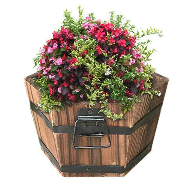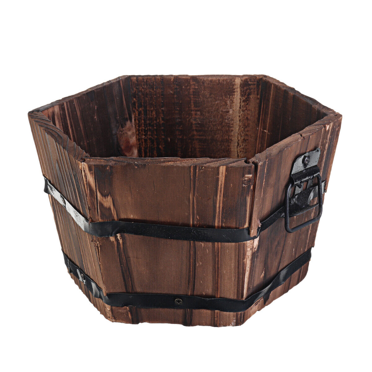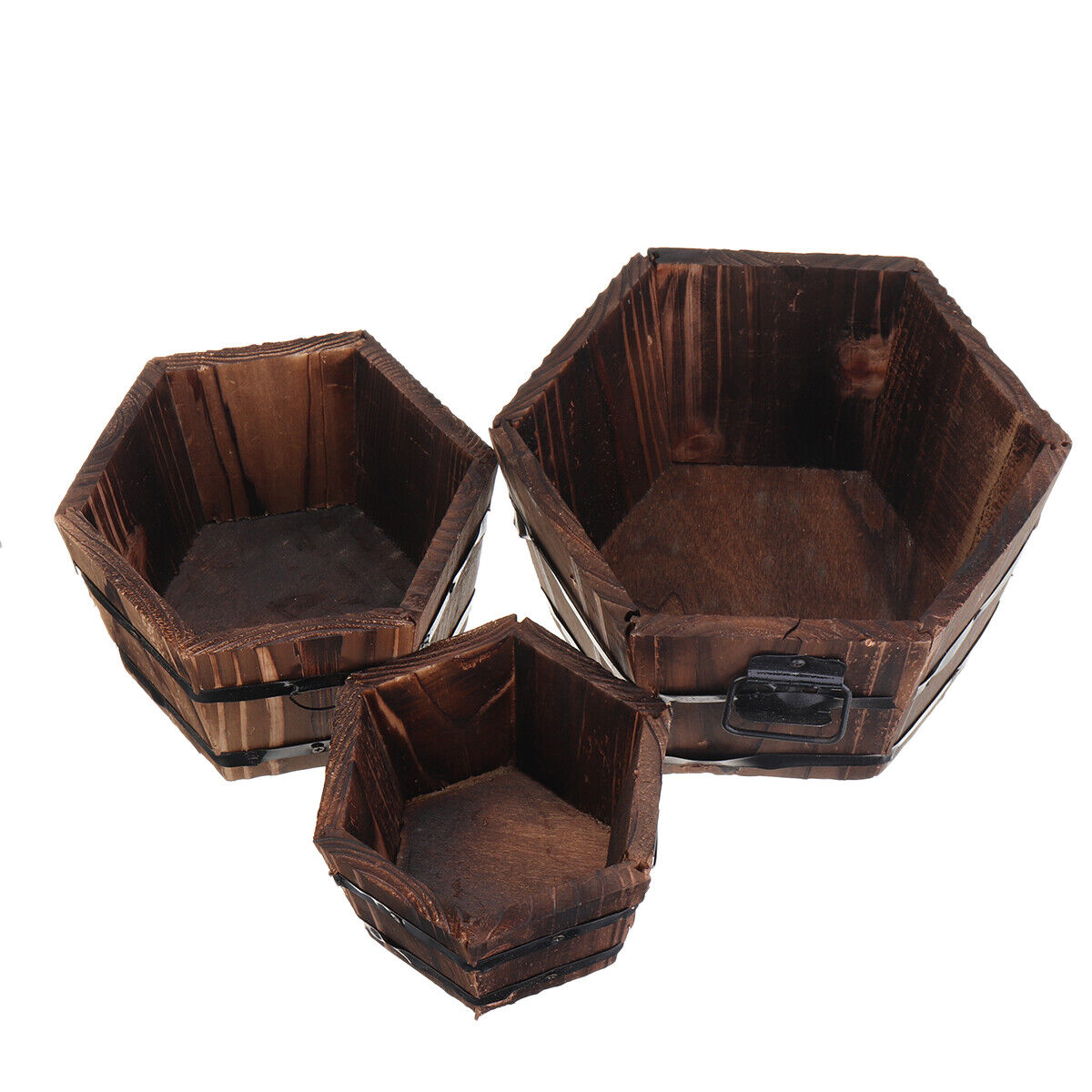 3PCS S/M/L Wooden Plant Planter Hexagon Flower Pot Rustic Style Garden Barrel