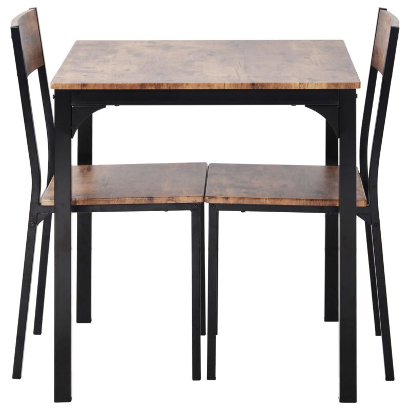 3pcs Square Table 2 Chairs Set Metal Bar Kitchen Dining Room Furniture Brown UK