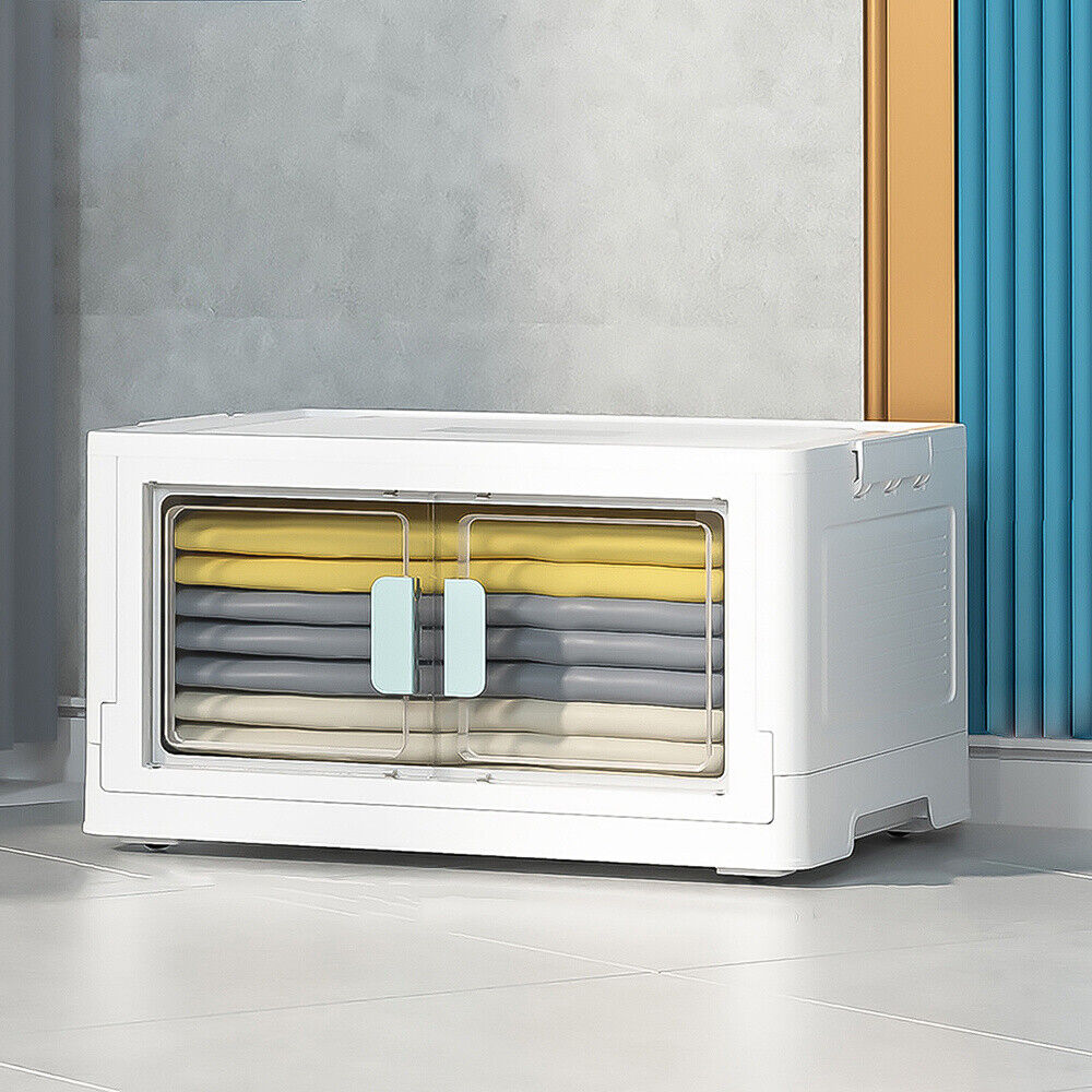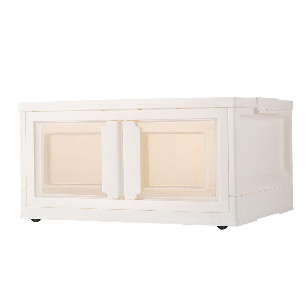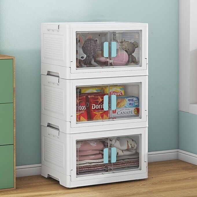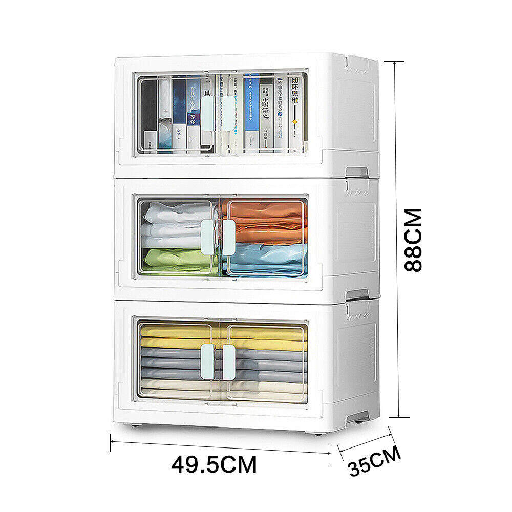 3PCS Stackable Folding Plastic Clothes Organizer Dual Doors Storage Boxes Case