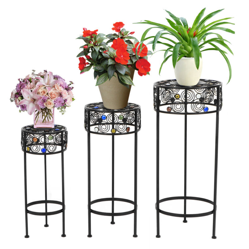 3Pcs Tall Modern Plant Pot With Stands Set Modern Freestanding Planter