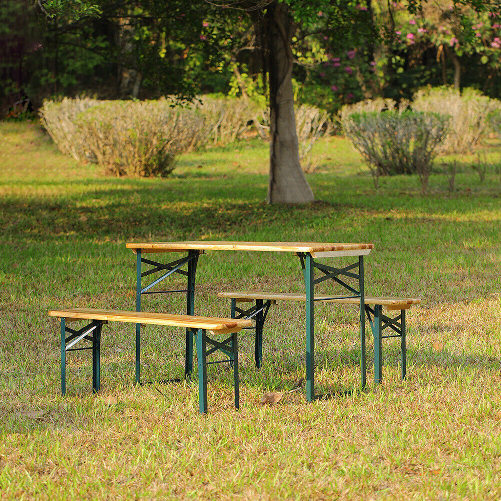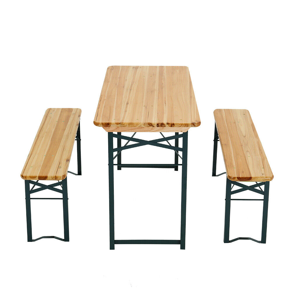 3Pcs Wooden Portable Folding Picnic Beer Bench Table Trestle Pub Patio Outdoor
