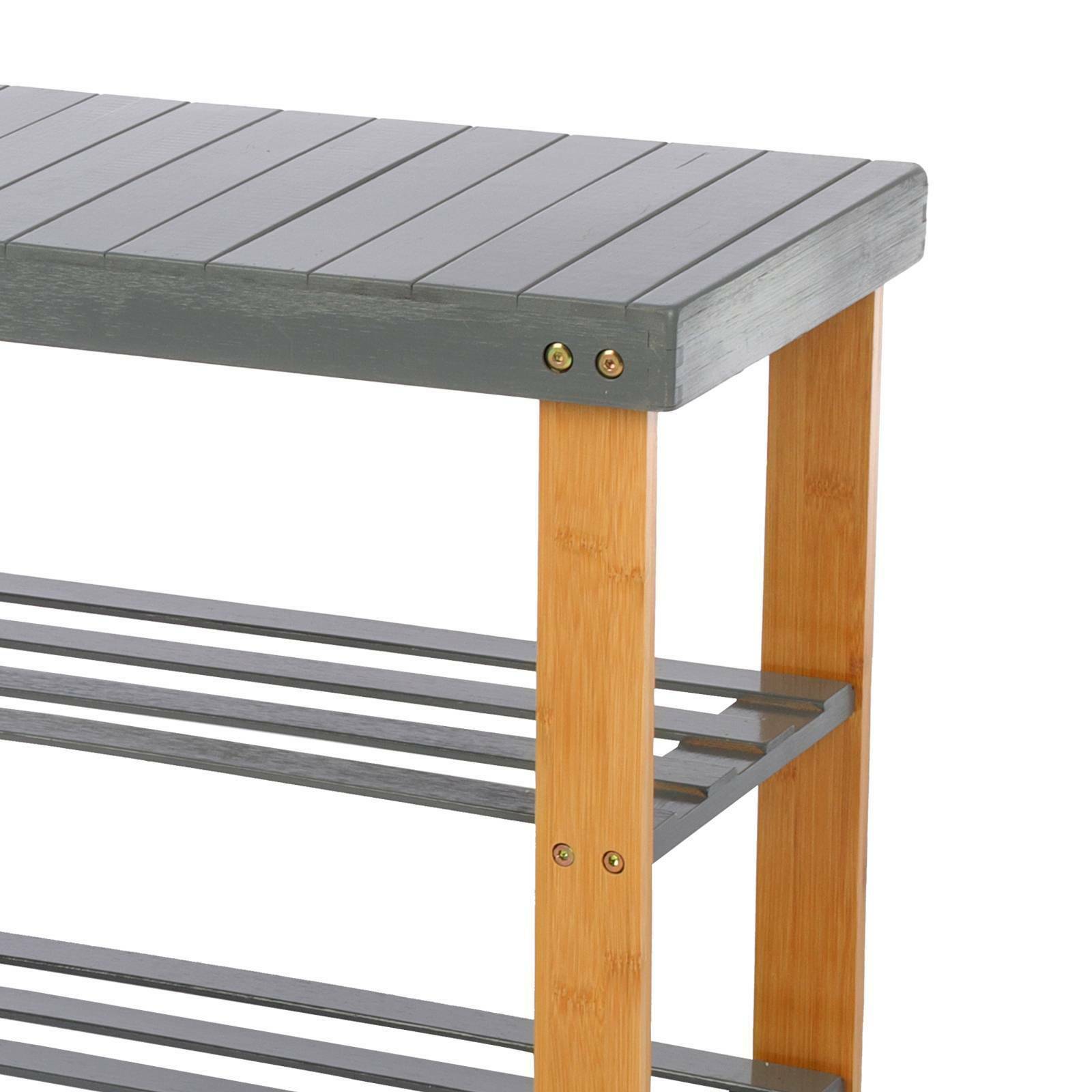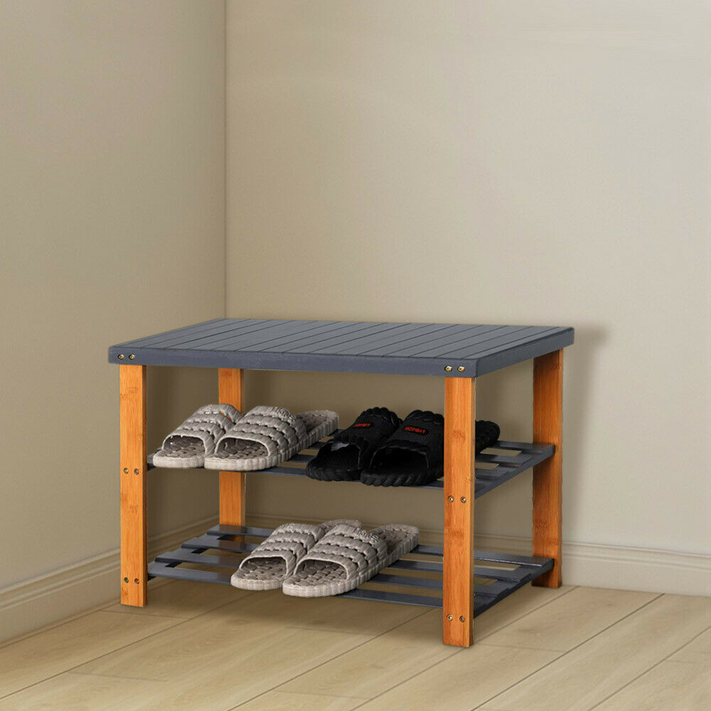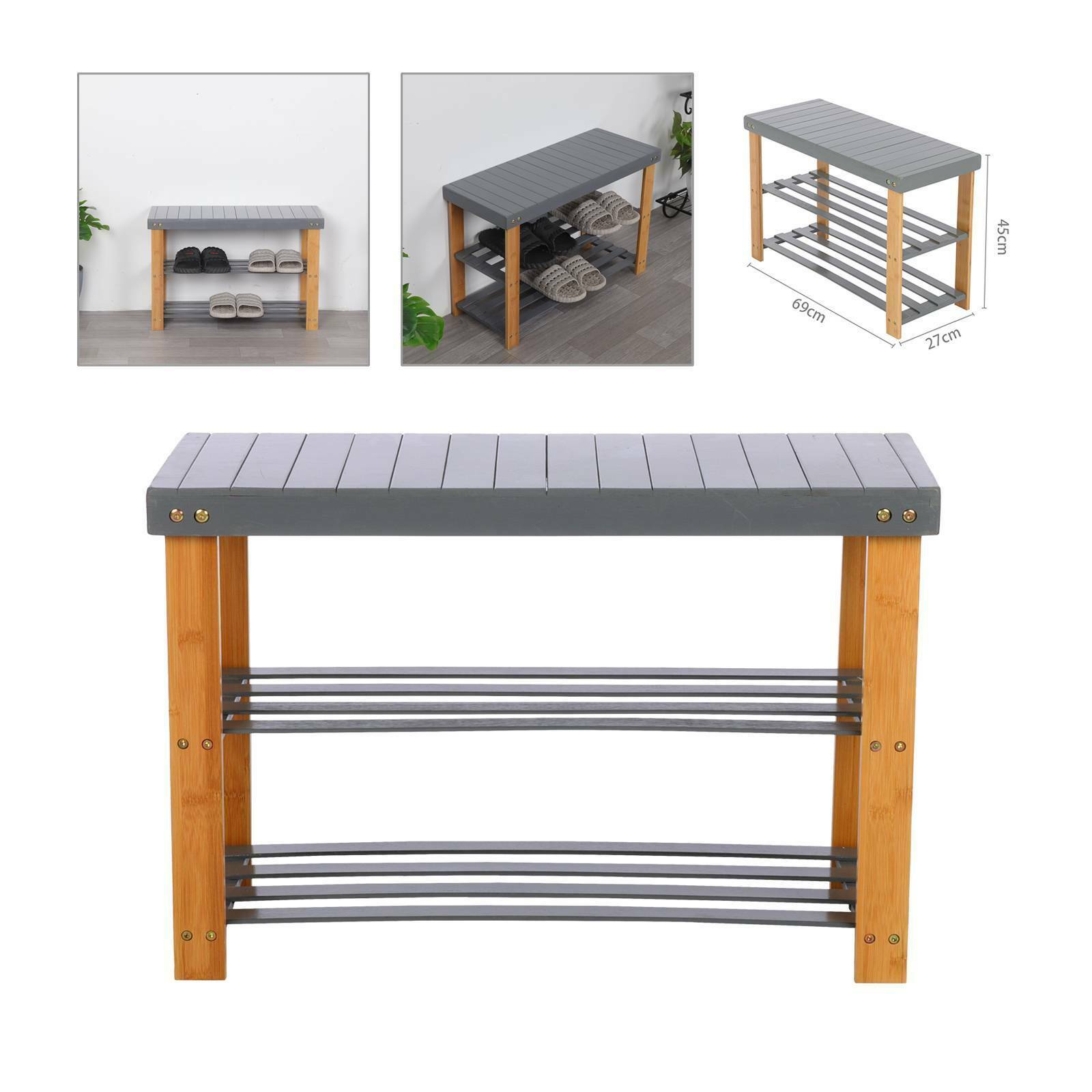 3Tier Grey Shoe Rack Seating Bench Hallway Storage Organiser Holder Stand Bamboo