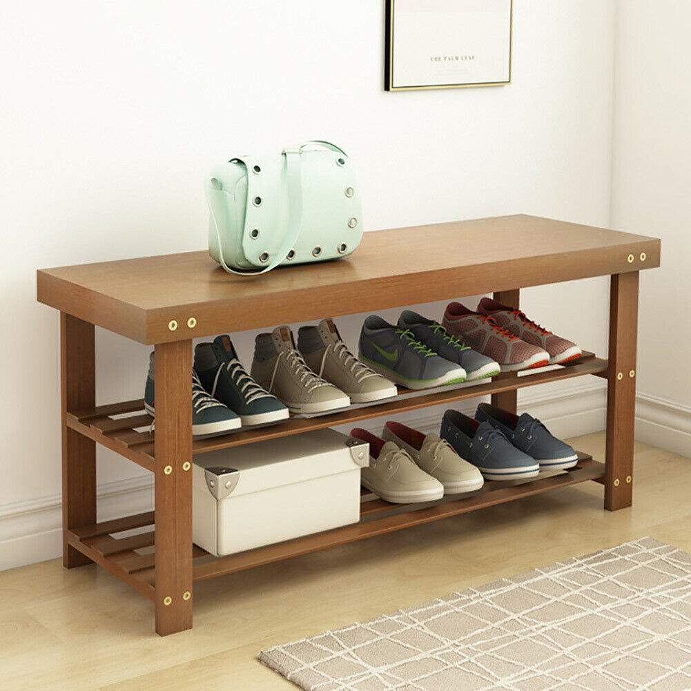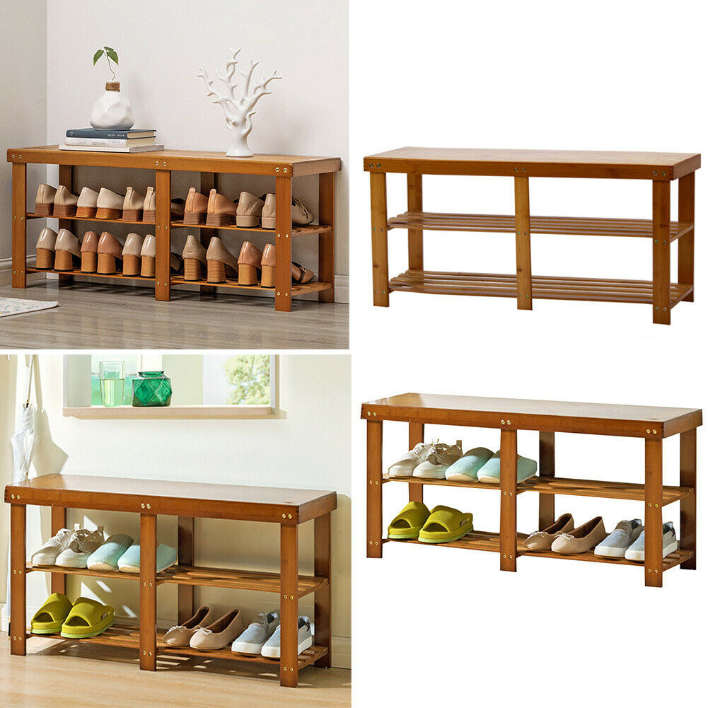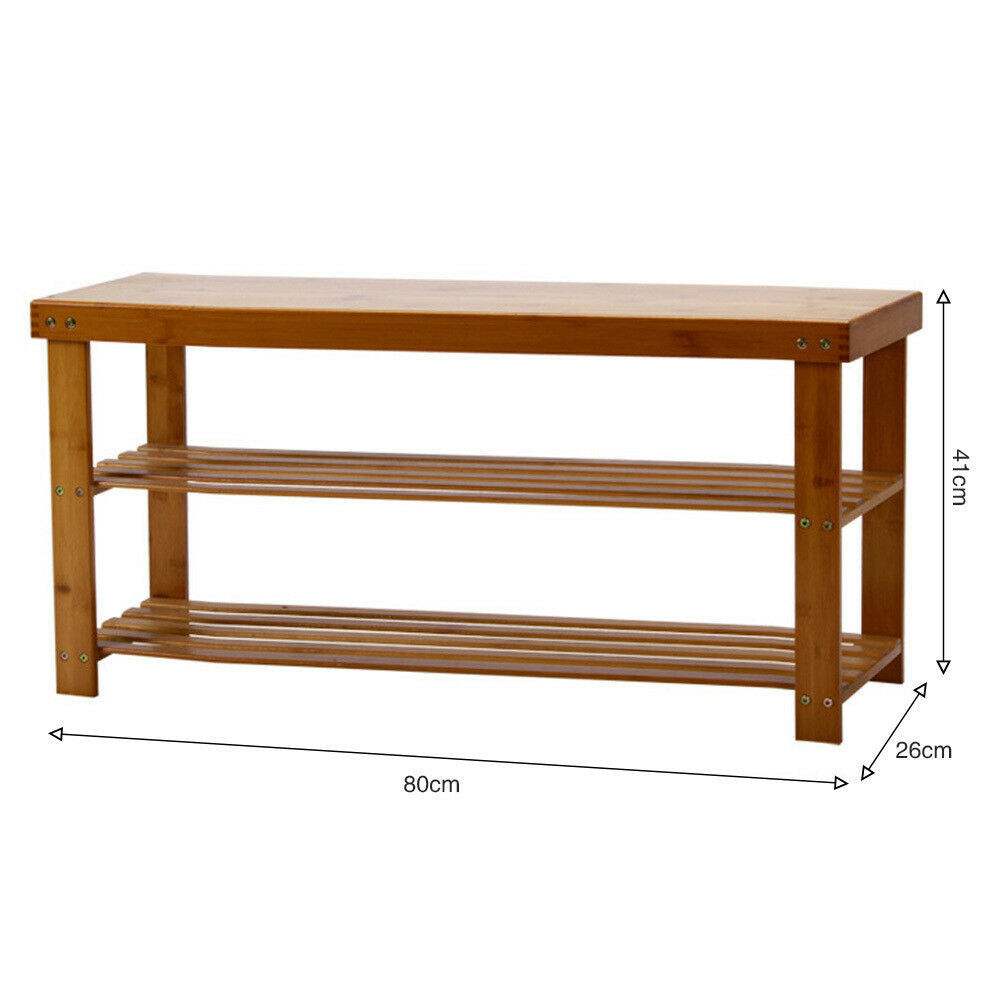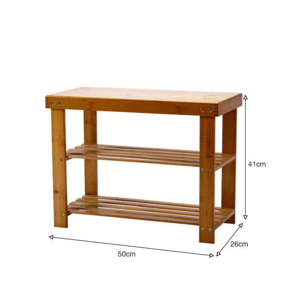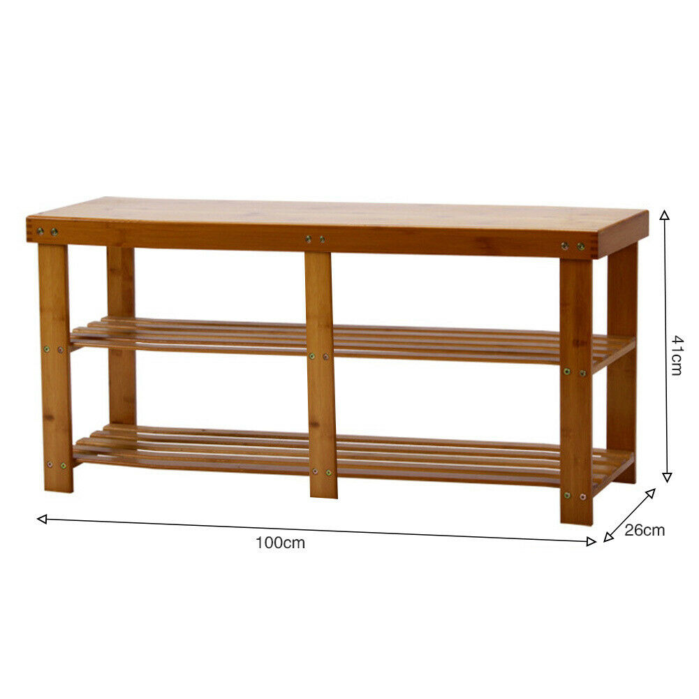 3Tier Natural Wooden Shoe Rack Bench Organiser Stand Storage Shelf Seat Entryway