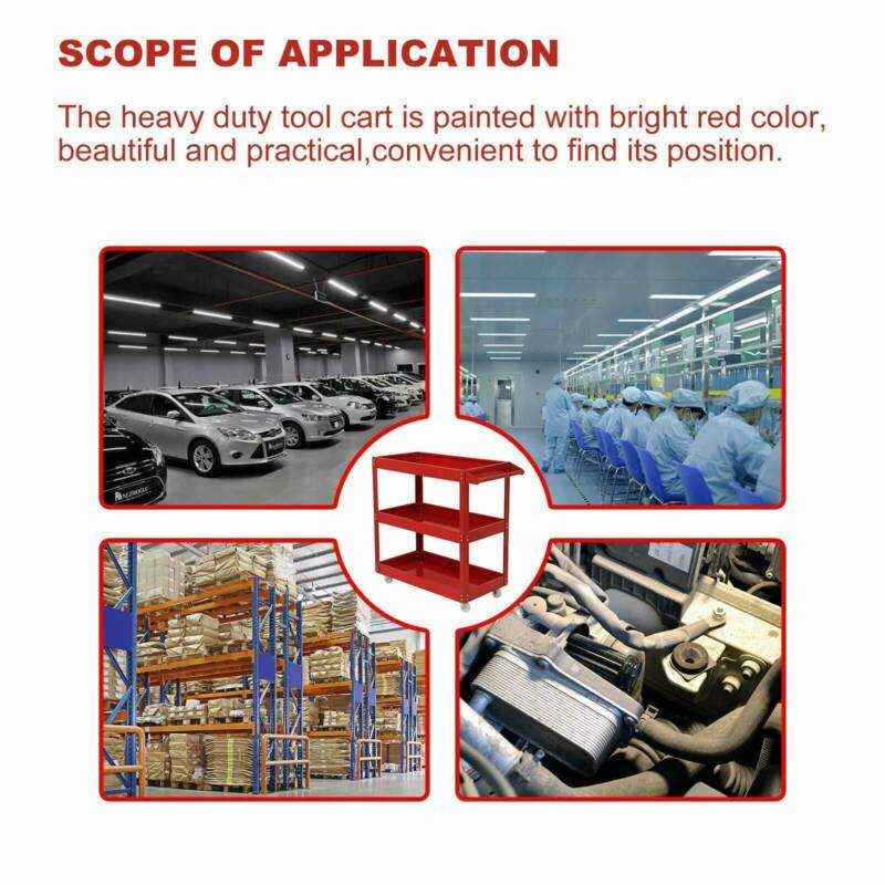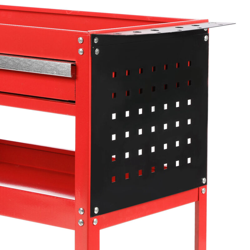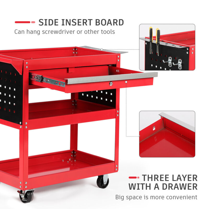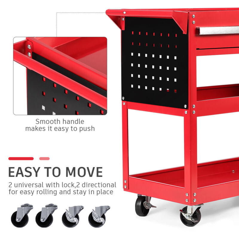 3Tier Tool Trolley Cart Storage Shelf Roller Cabinet Garage Workshop with Drawer