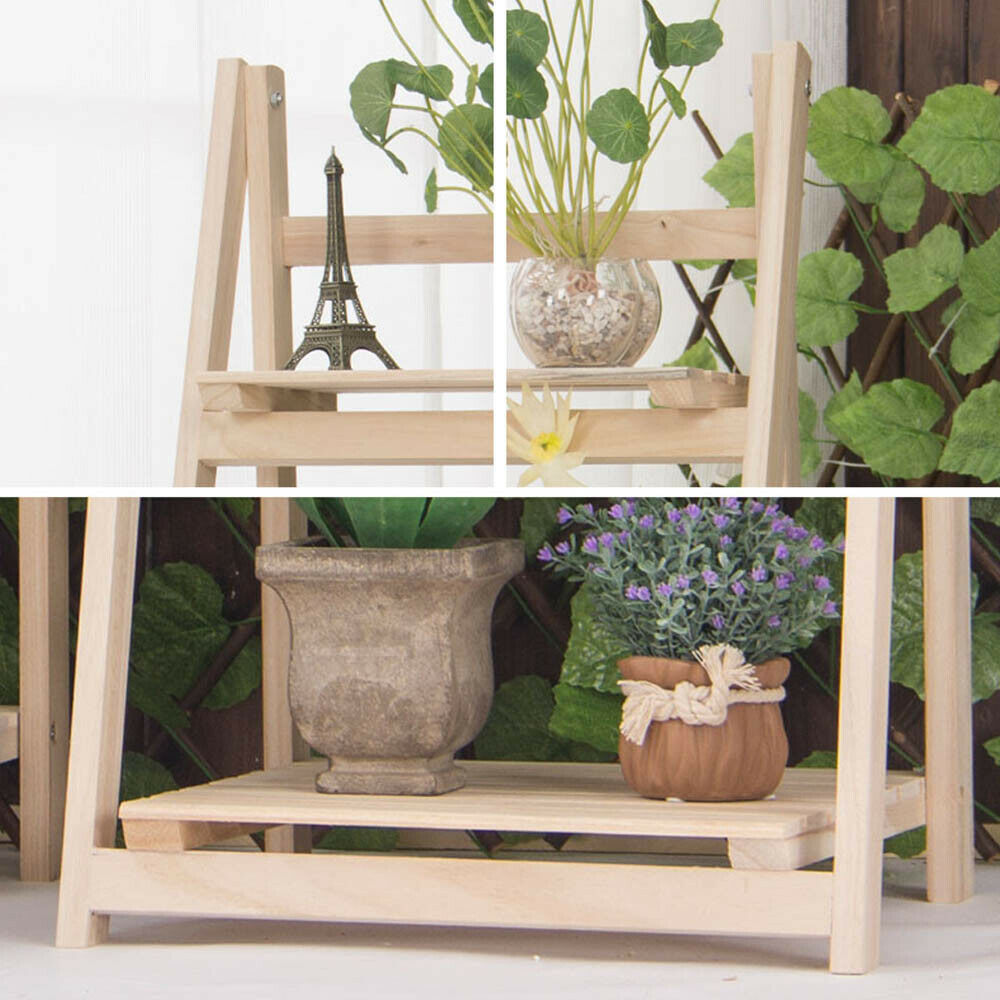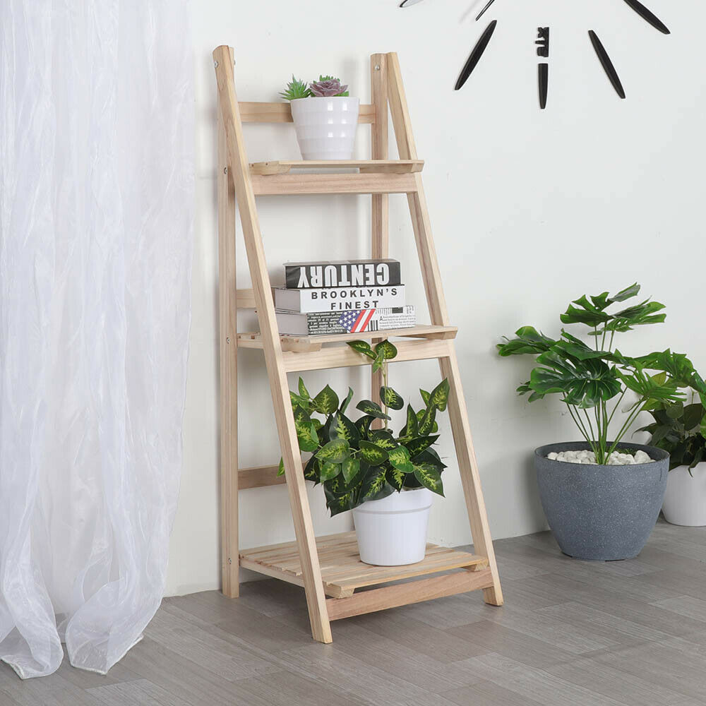 3Tier Wooden Ladder Folding Book Shelf Stand Plant Flower Display Shelving Rack
