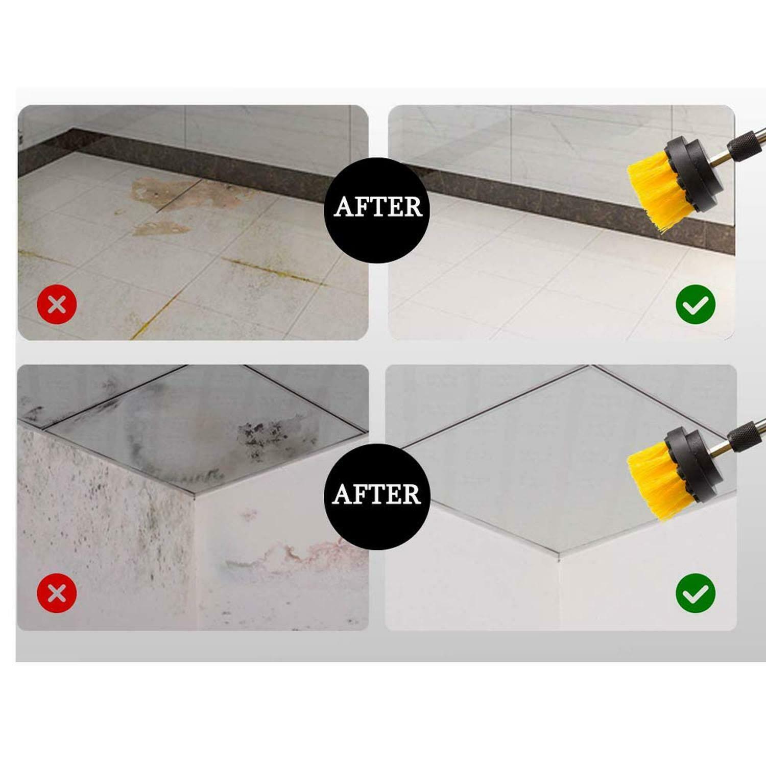 3x DRILL ATTACHMENT CLEANING BRUSH SET POWER SCRUB HOME CAR TILE BATHROOM YELLOW