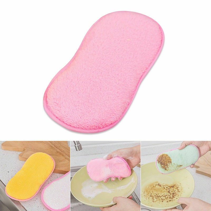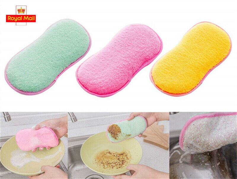 3X Mixed Colour Double Side Dish Cleaning Sponges Scouring Pads Kitchen Bathroom