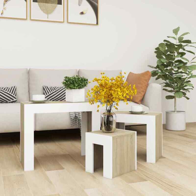 - 3x Nesting Coffee Tables Engineered Wood Table Furniture Multi Colours vidaXL