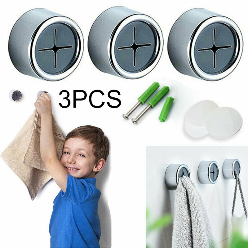 3x Push In Tea Towel Holder Grip Hook ABS Self Adhesive Rack Kitchen Cloth Clip