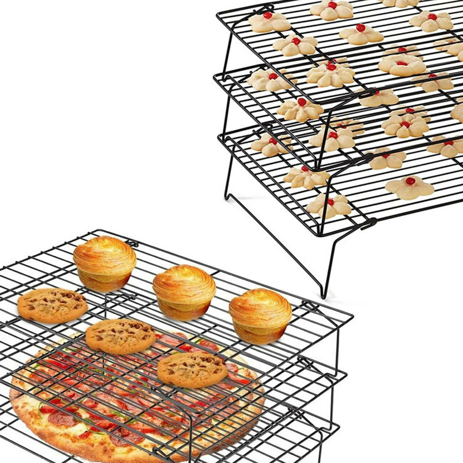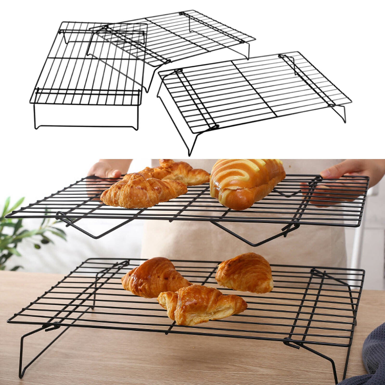 3X Stackable Metal Wire Cake Bread Biscuit Baking Cooling Tray Rack Kitchen Tool