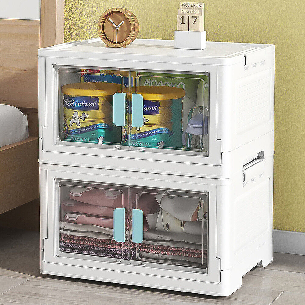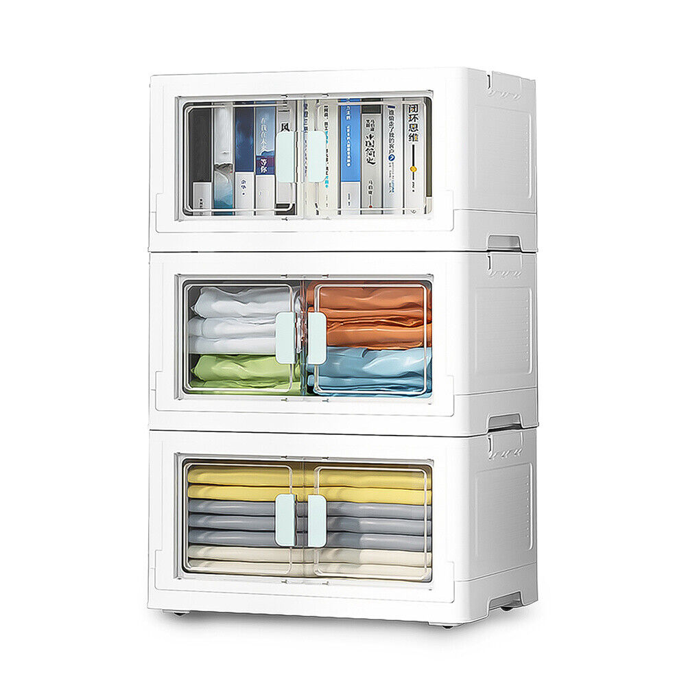 3X Stackable Storage Boxes Container Bookcase Organizer Folding with Double Door