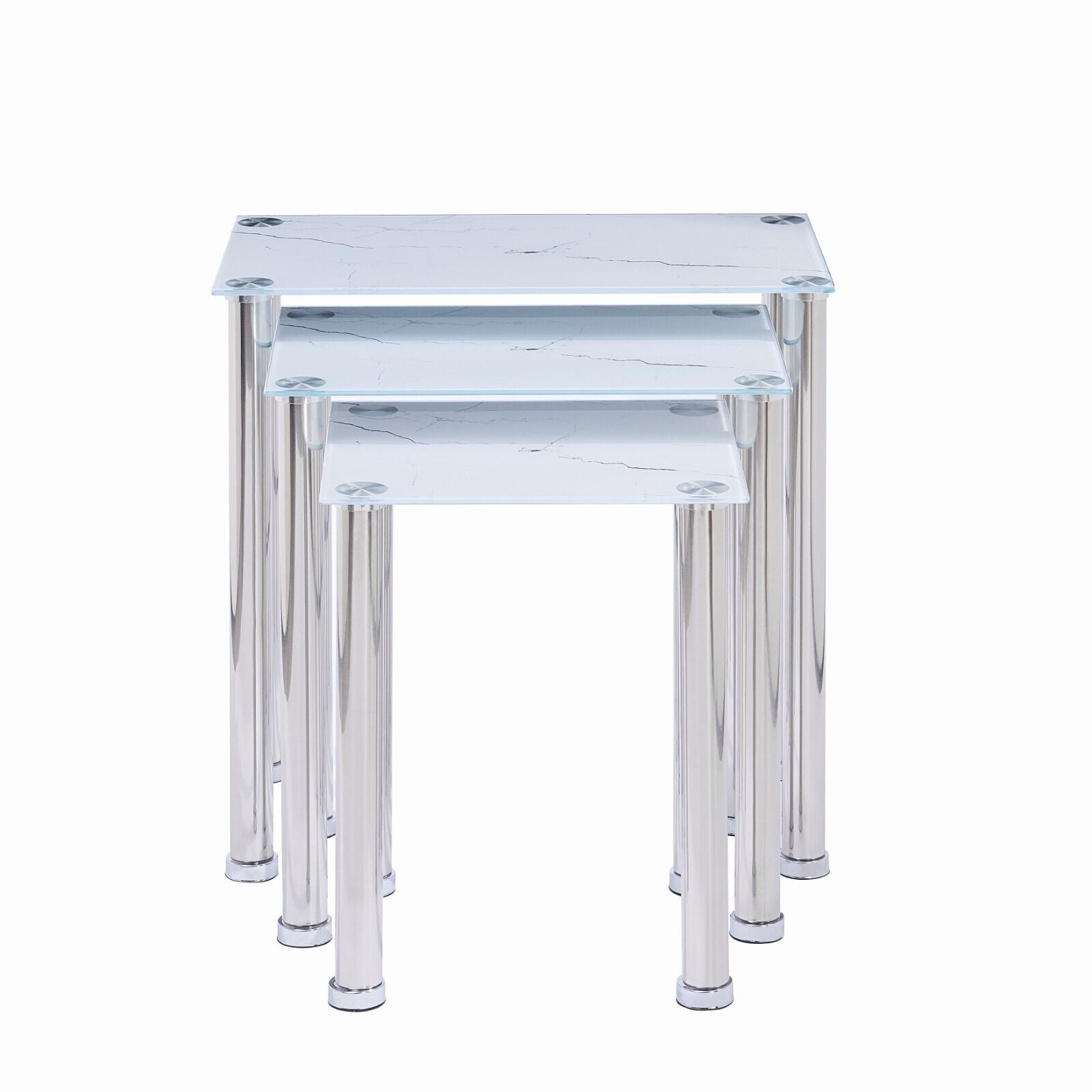 3x White Marble Tempered Glass Side End Table Nested Table Stainless Steel Tubes