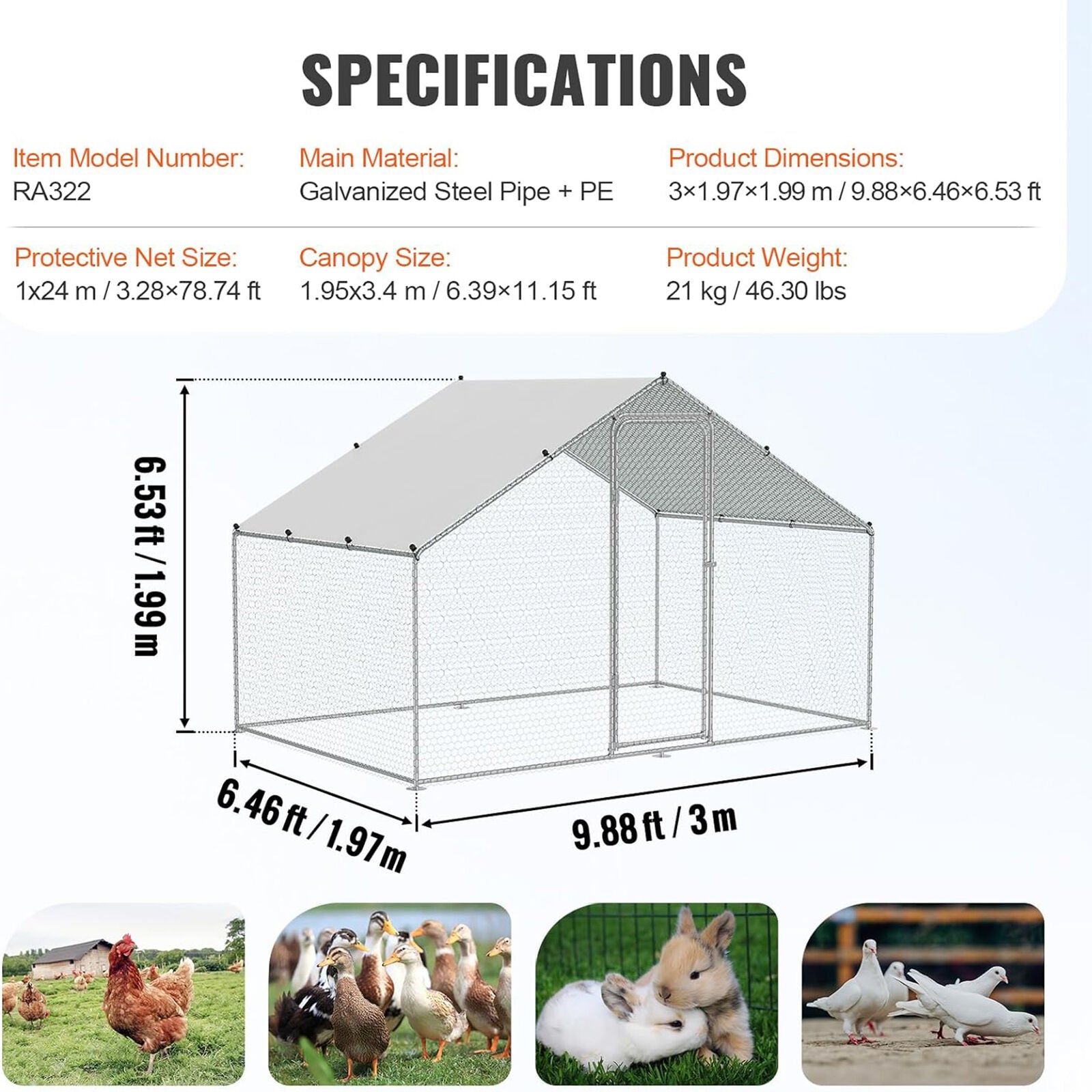 3X2X2m Chicken Run Cage Large Walk In Coop Poultry Hen Rabbit Duck Kennel Hutch