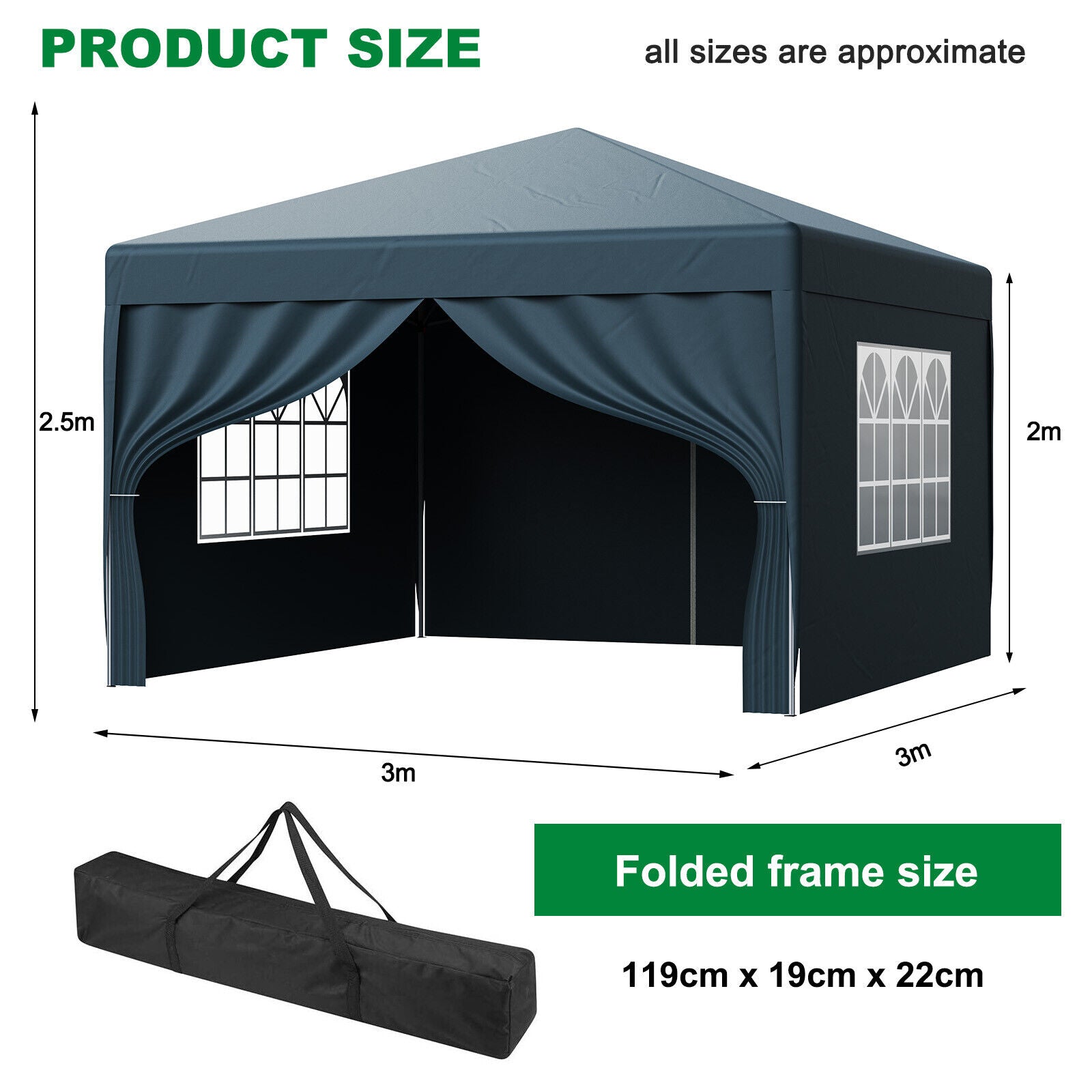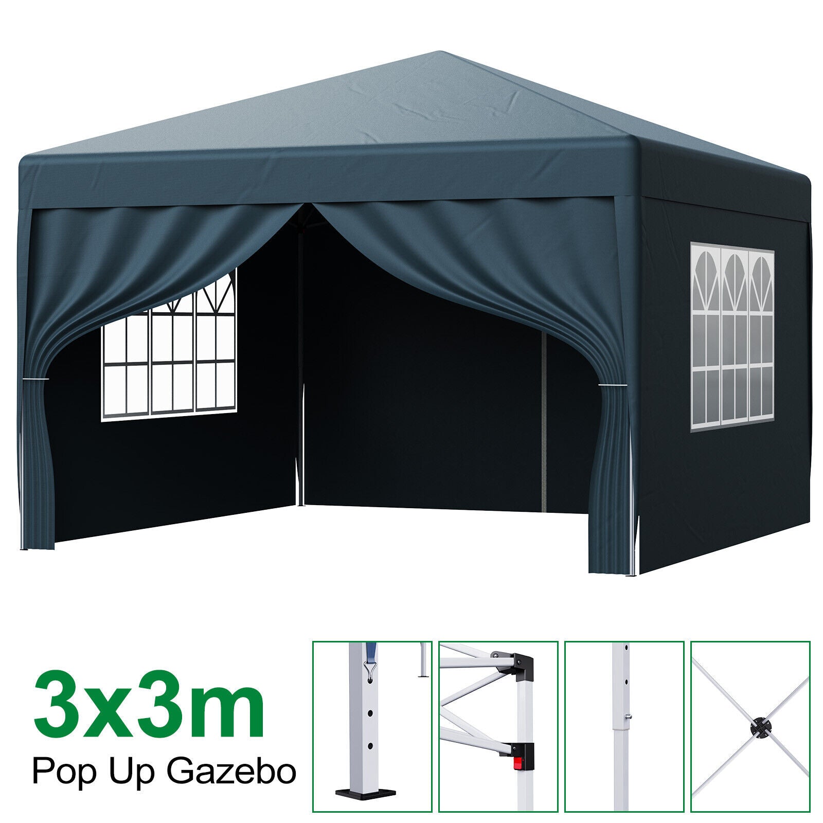 3x3m Pop Up Gazebo Heavy Duty Waterproof Commercial Grade Marketstall w/4 Sides