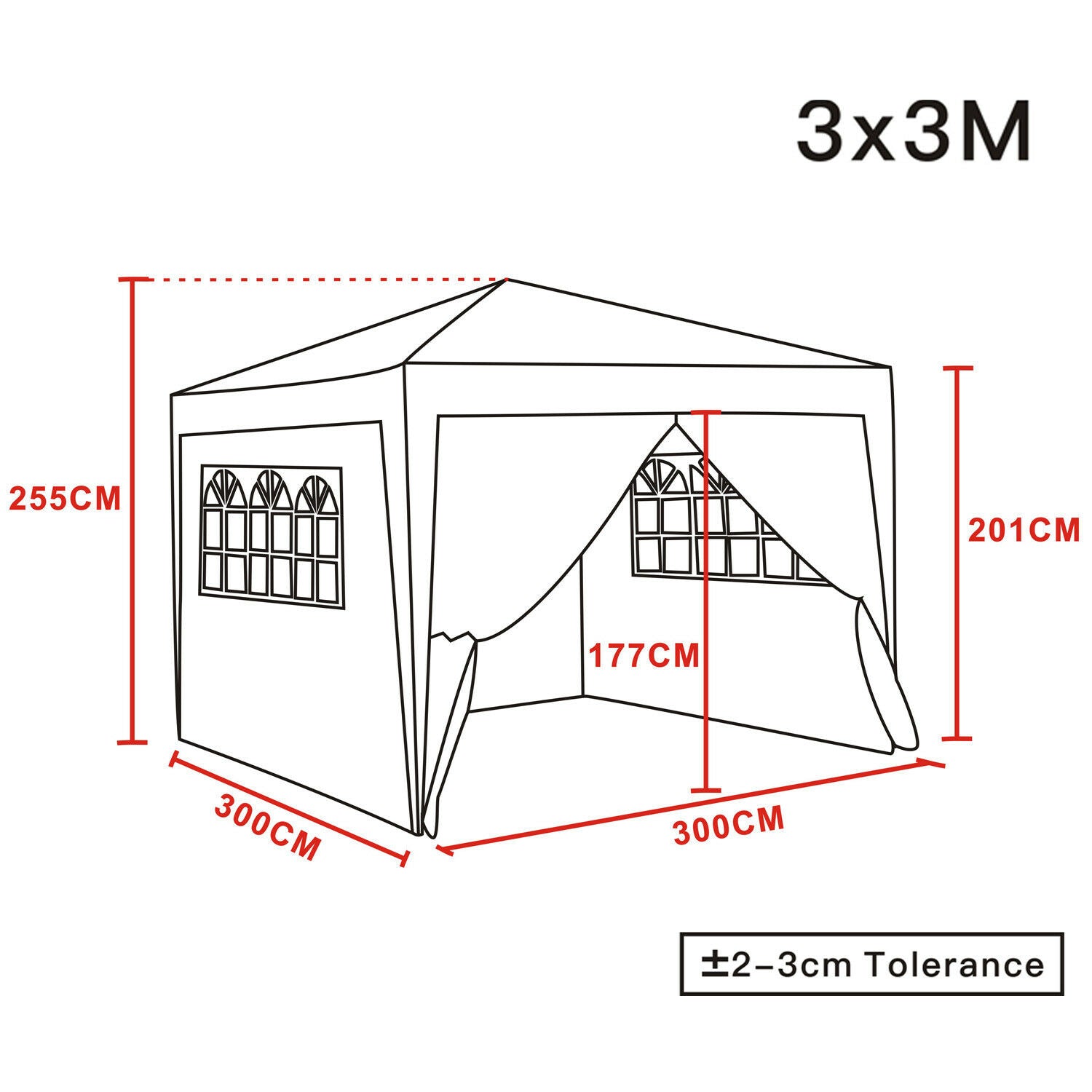 3x3m Pop Up Gazebo Marquee Outdoor Garden Party Tent Canopy 4 Side Panels New