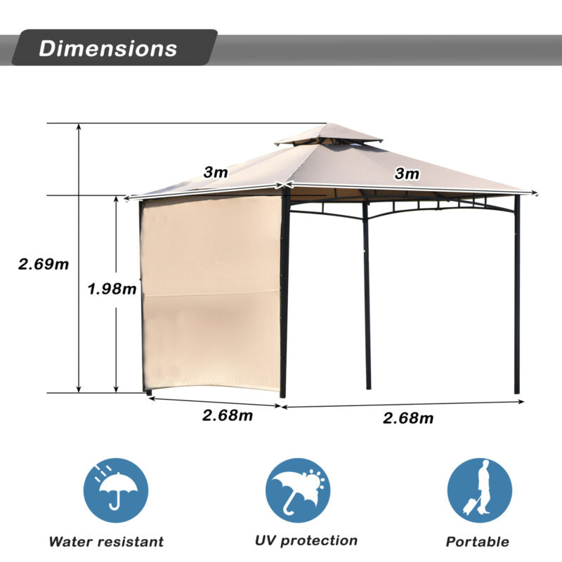 3x3(m) Steel Pergola Gazebo Marquee Garden Shelter Sun Shade Patio Awning Gold