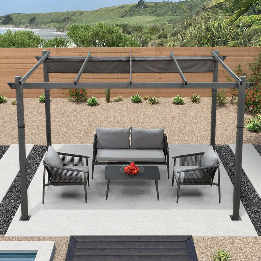 3x3M Waterproof Aluminium Outdoor Retractable Grill Pergola Gazebo Garden Canopy