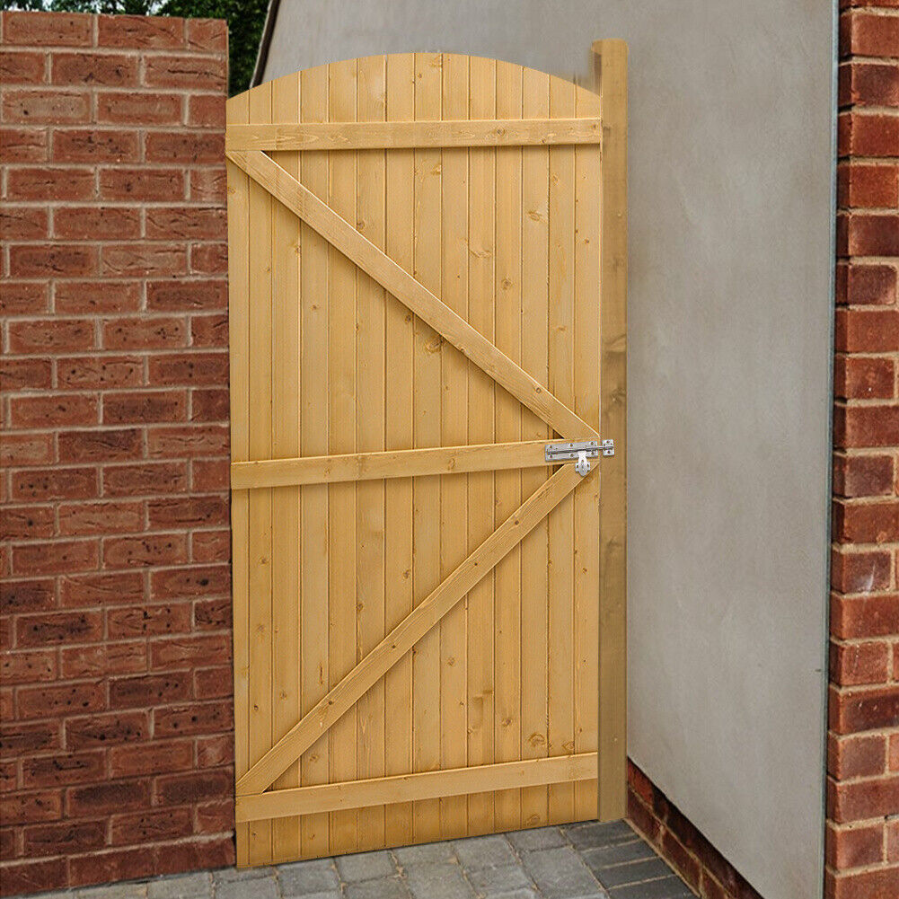 3x7ft Wooden Garden Gate Arch Top Pedestrian Gate Fence Door Free Fitting Kits