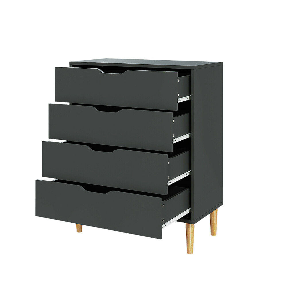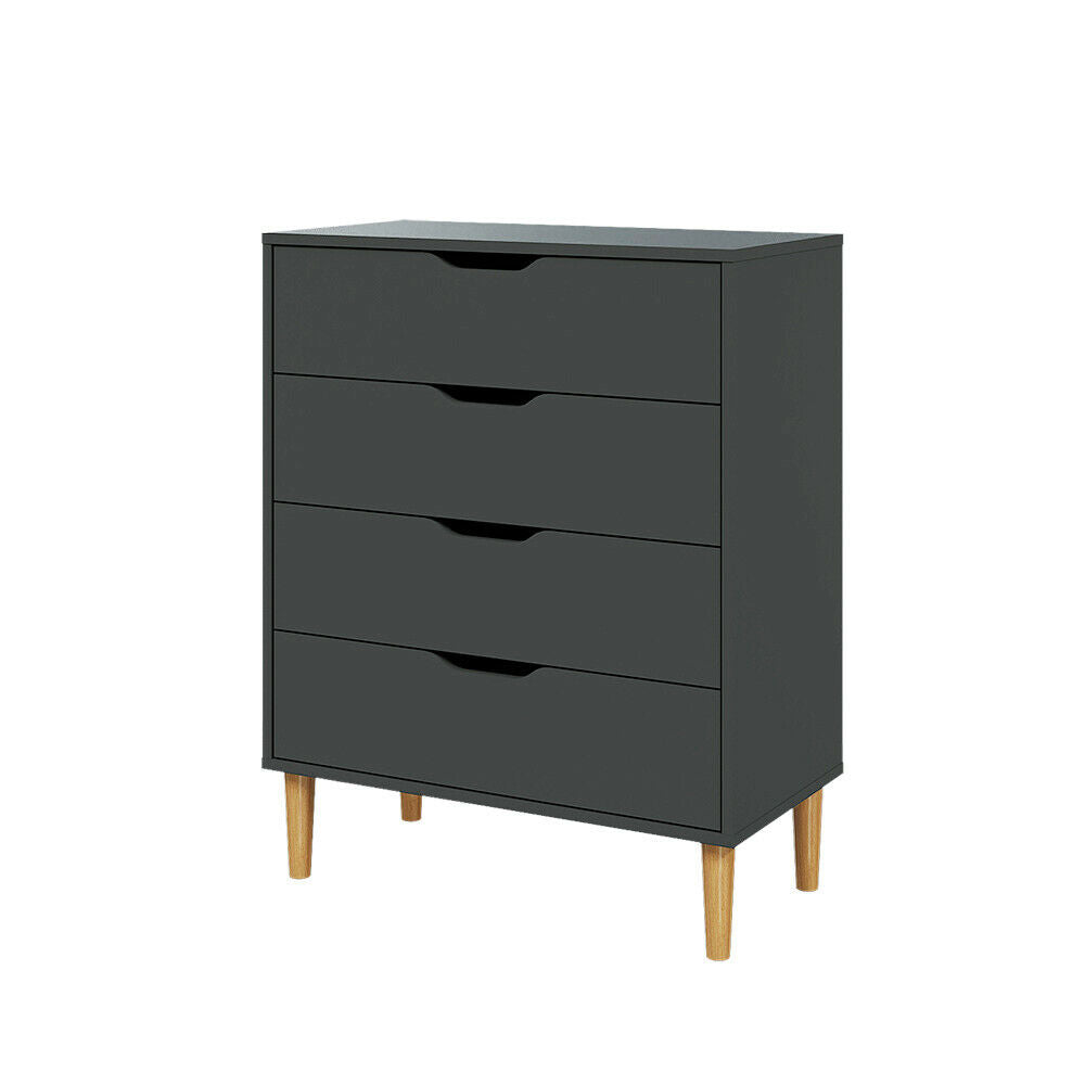 4,5 Drawer Chest of Drawer Dark Grey Bedside Table Storage Cainet Solid Wood Leg