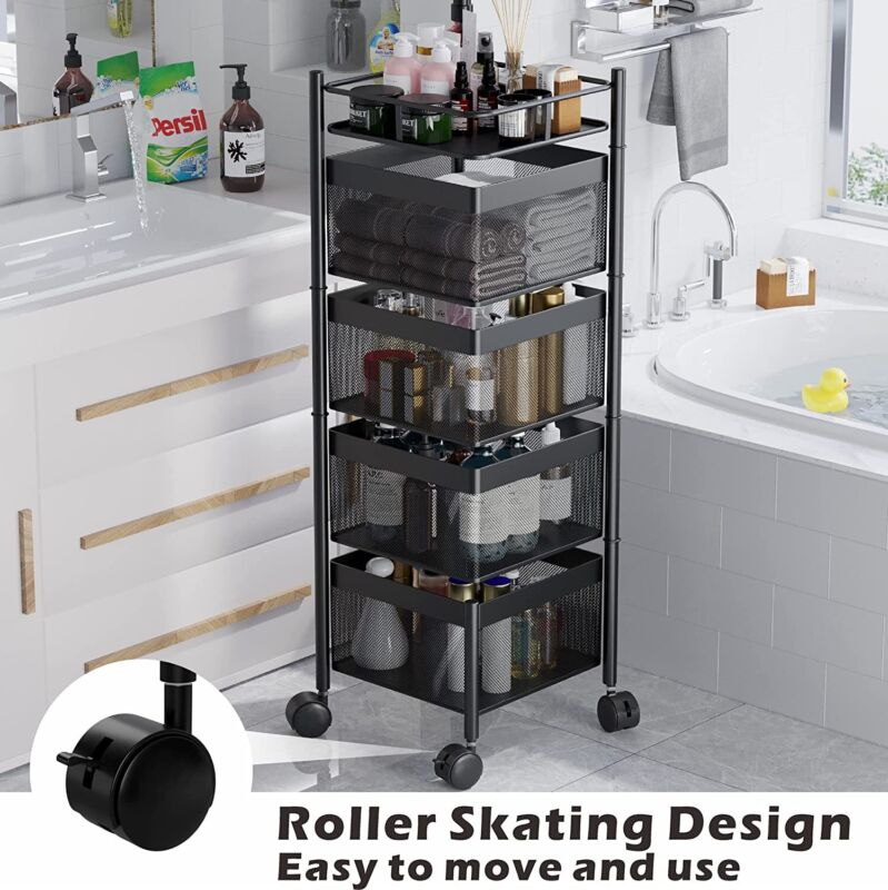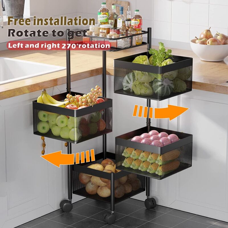 4/5 Tiers Kitchen Rotating Trolley Cart Vegetable Fruits Organiser Storage 95cm