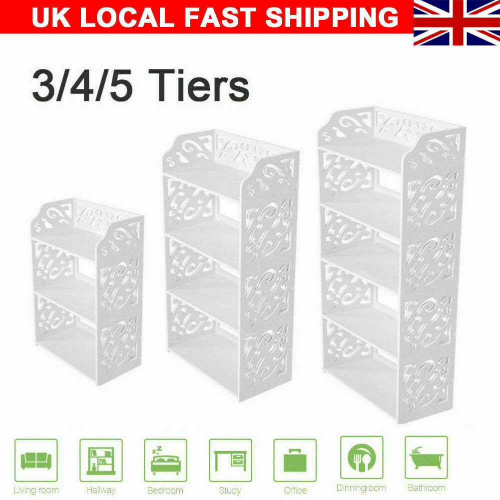 4/5 Tiers UK Shoe Rack Storage Shelf Display Stand Organiser Unit Cabinet White