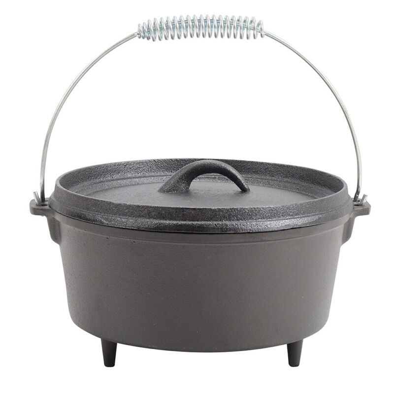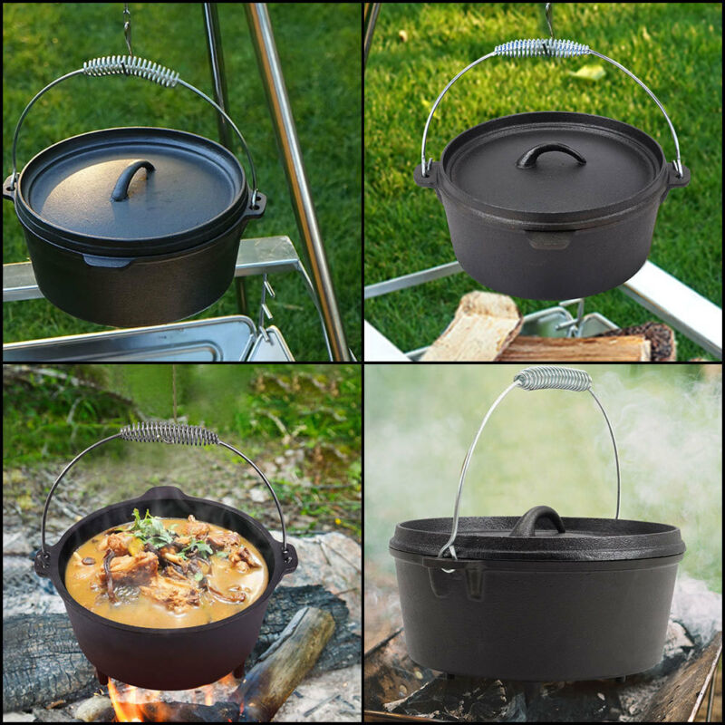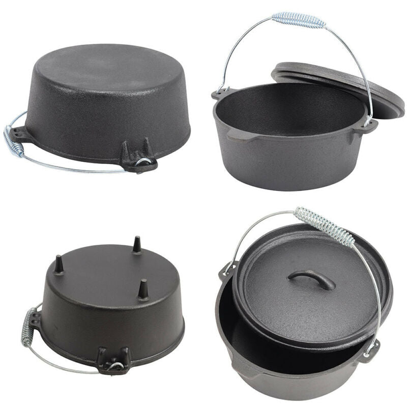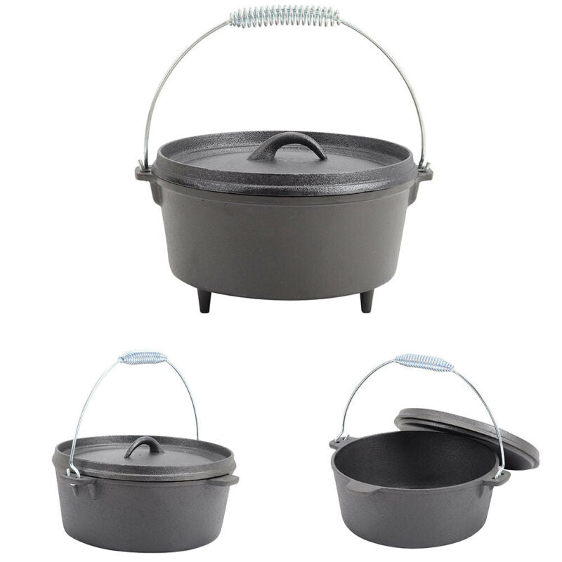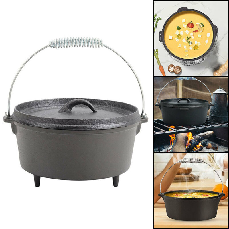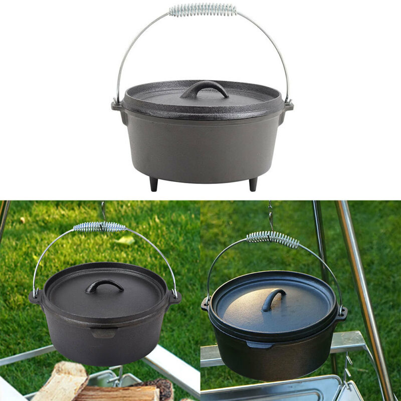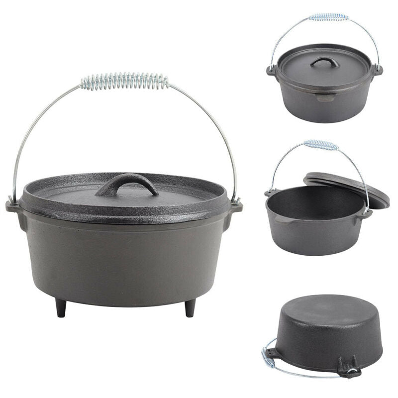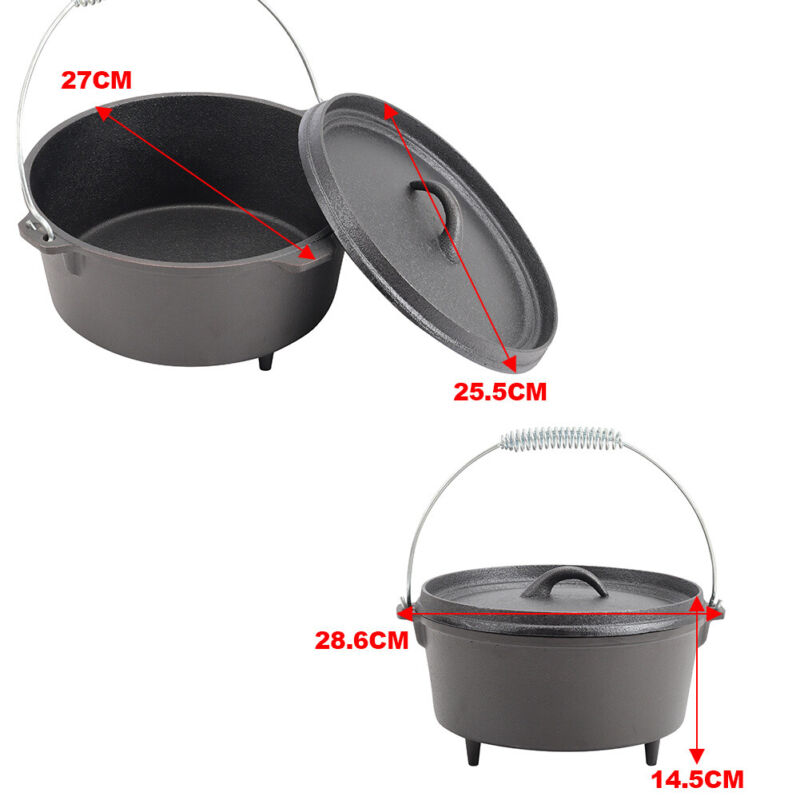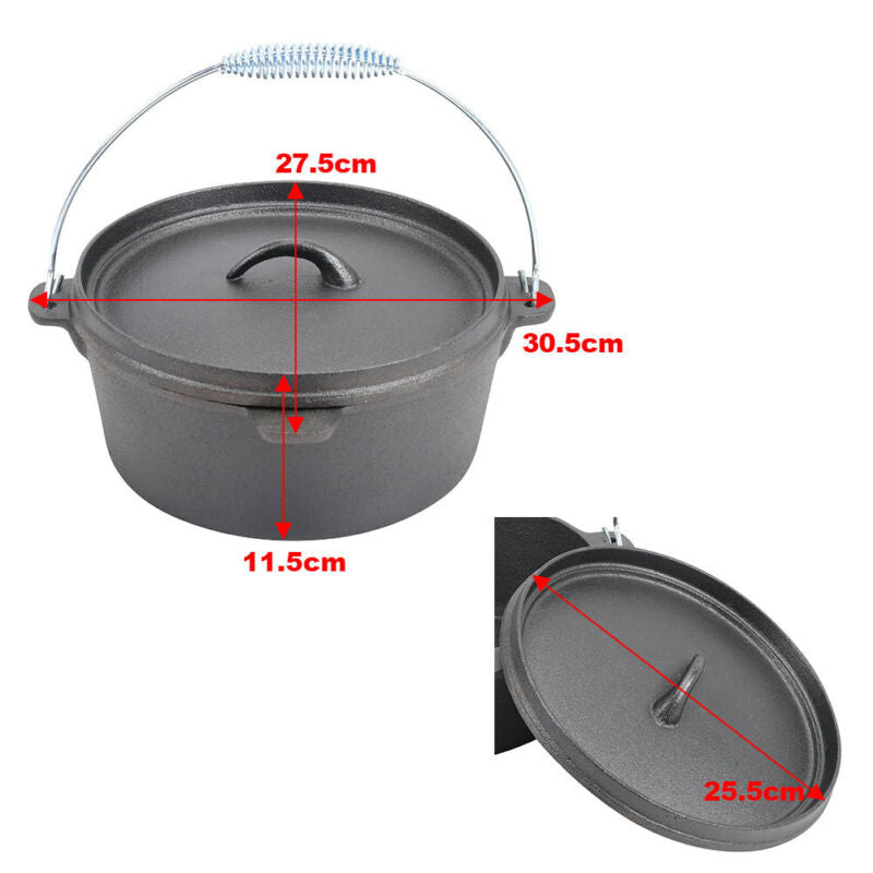 4.5L Dutch Oven Cooking Pot Cast Iron Outdoor Camping Camp Fire with Handle/Lid