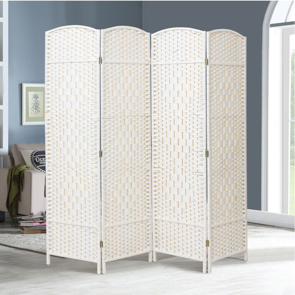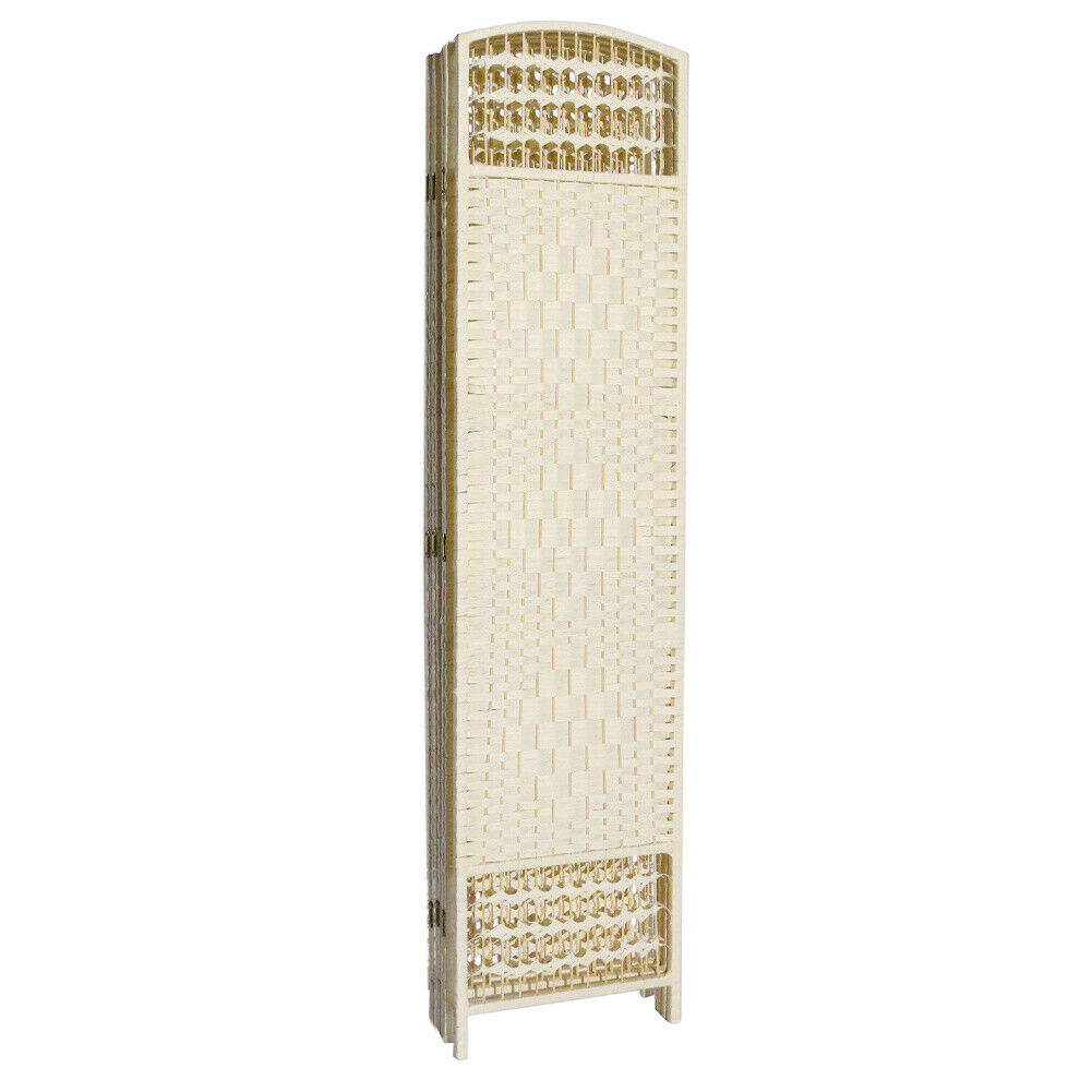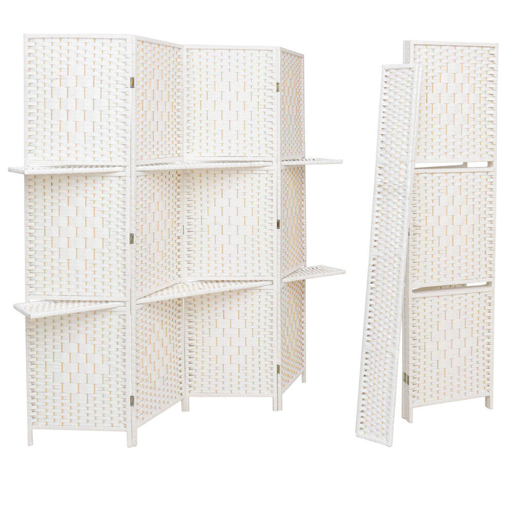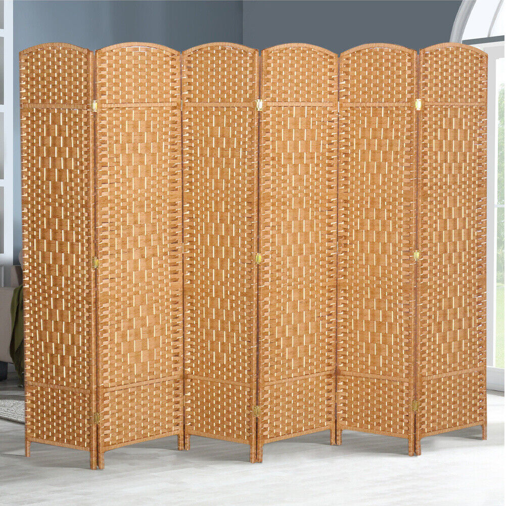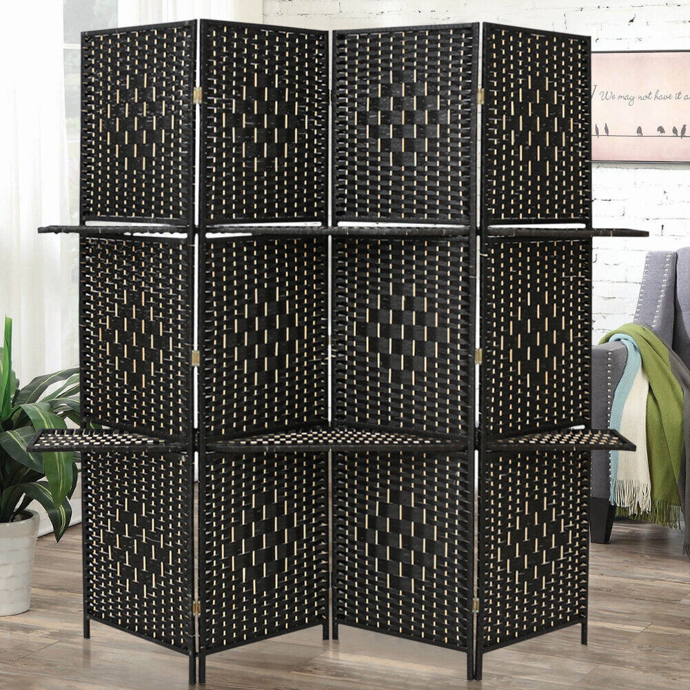 4/6 Panel Solid Weave Wicker Wood Room Divider Partition Screen Shelf Optional