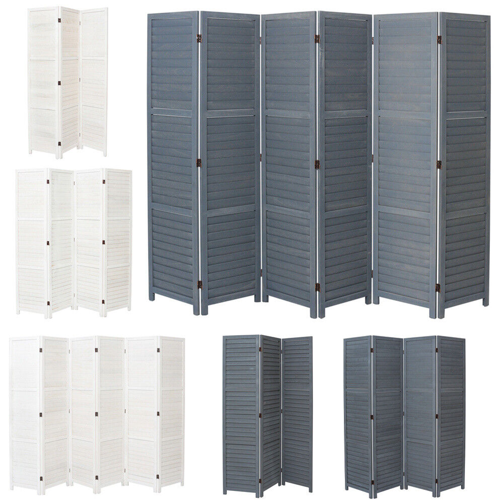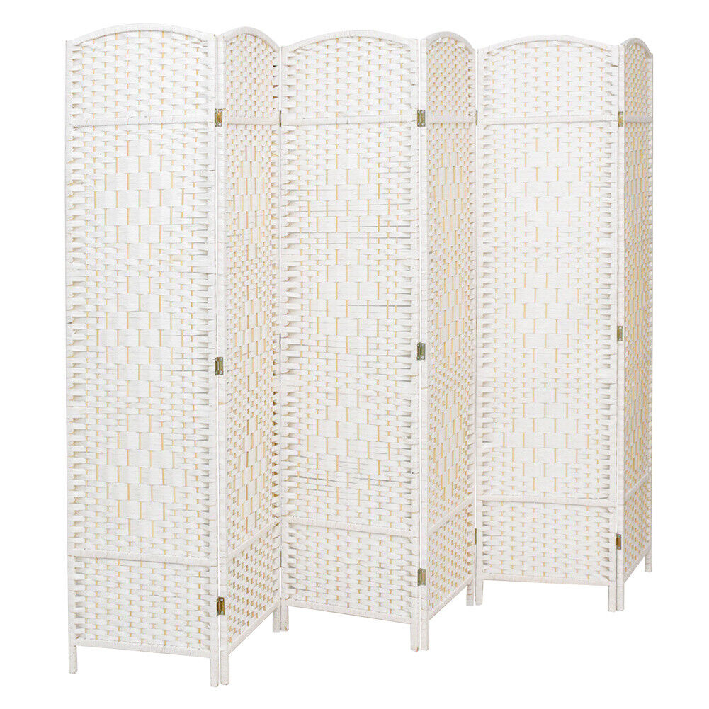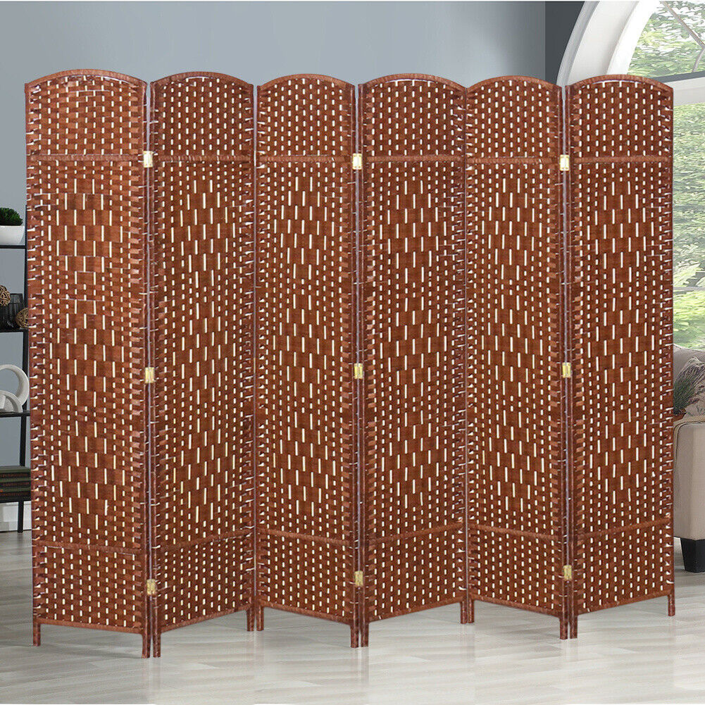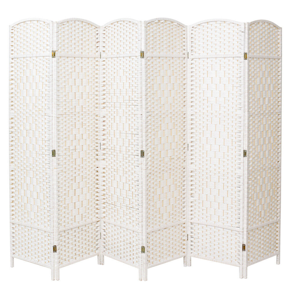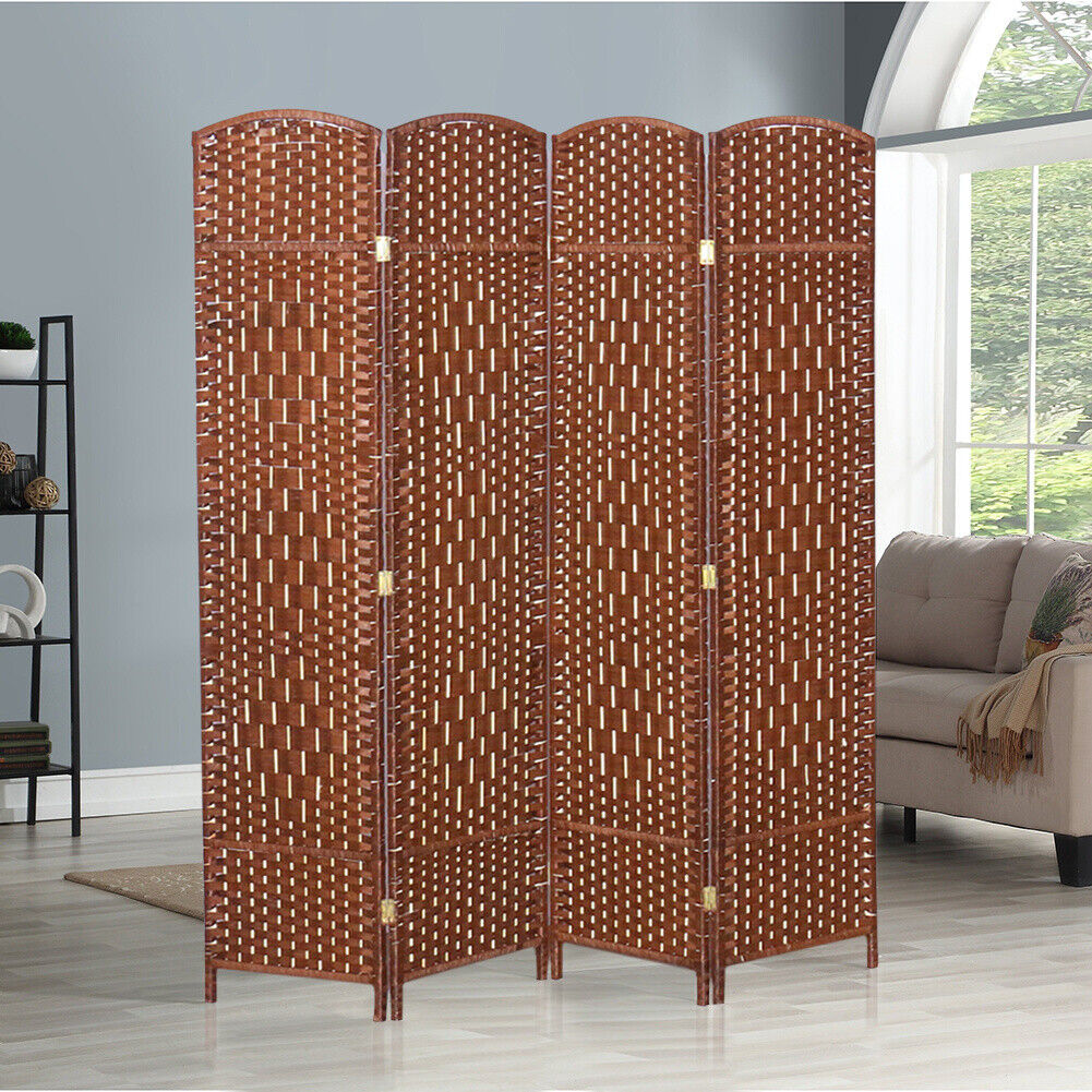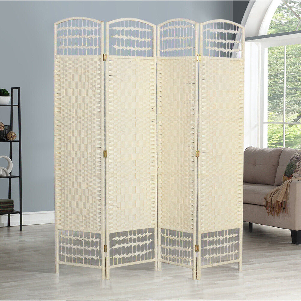 4/6 Panel Solid Weave Wicker Wood Room Divider Partition Screen Shelf Optional