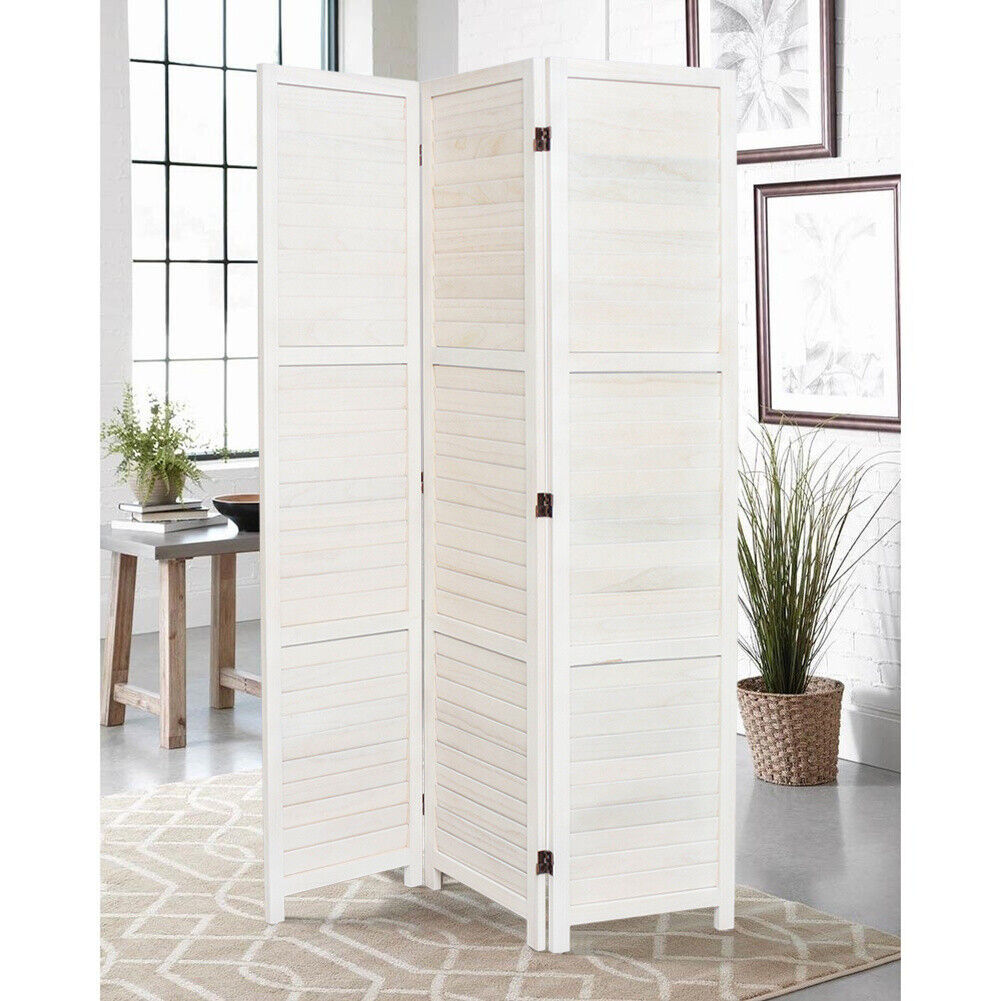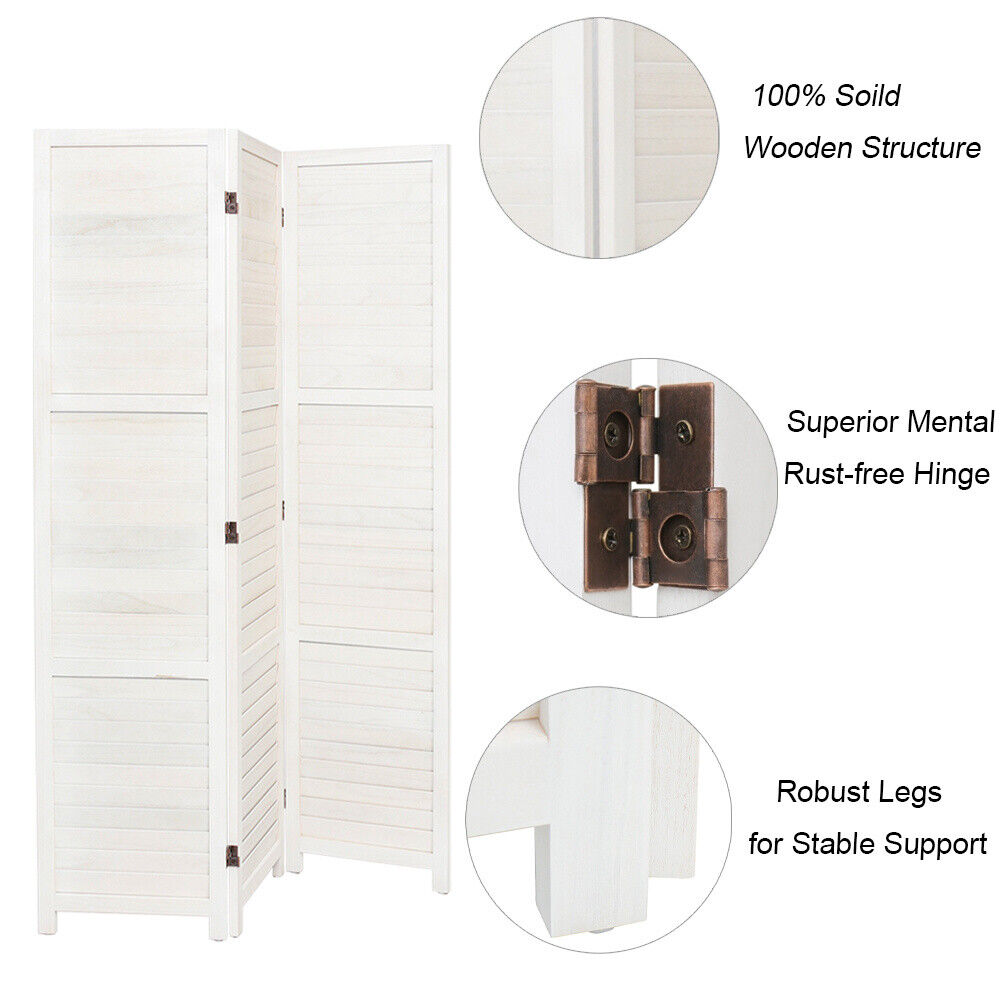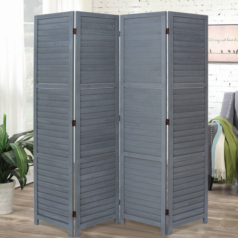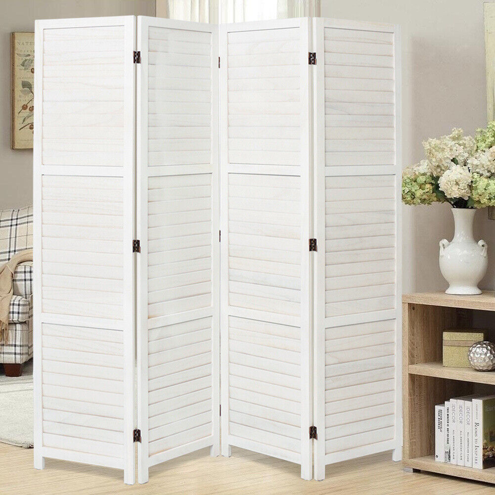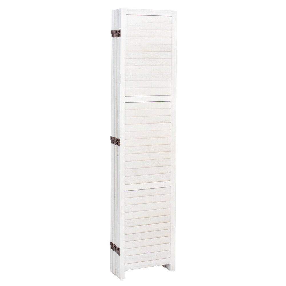4/6 Panel Solid Weave Wicker Wood Room Divider Partition Screen Shelf Optional