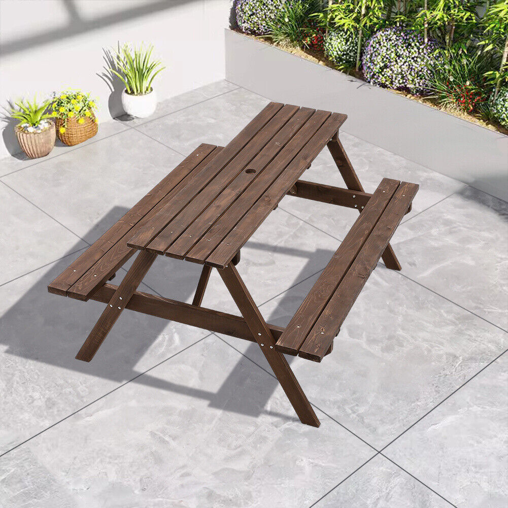 4/6 Seater Garden Picnic Bench Wooden Rectangle Table Patio Set Outdoor Brown UK
