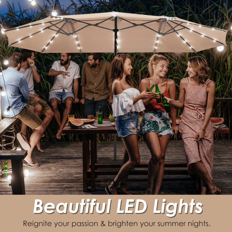 4.6m Double-Sided Parasol with Base Solar LED Lights and Crank Handle Outdoor