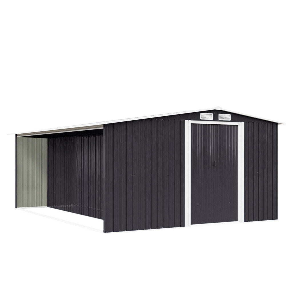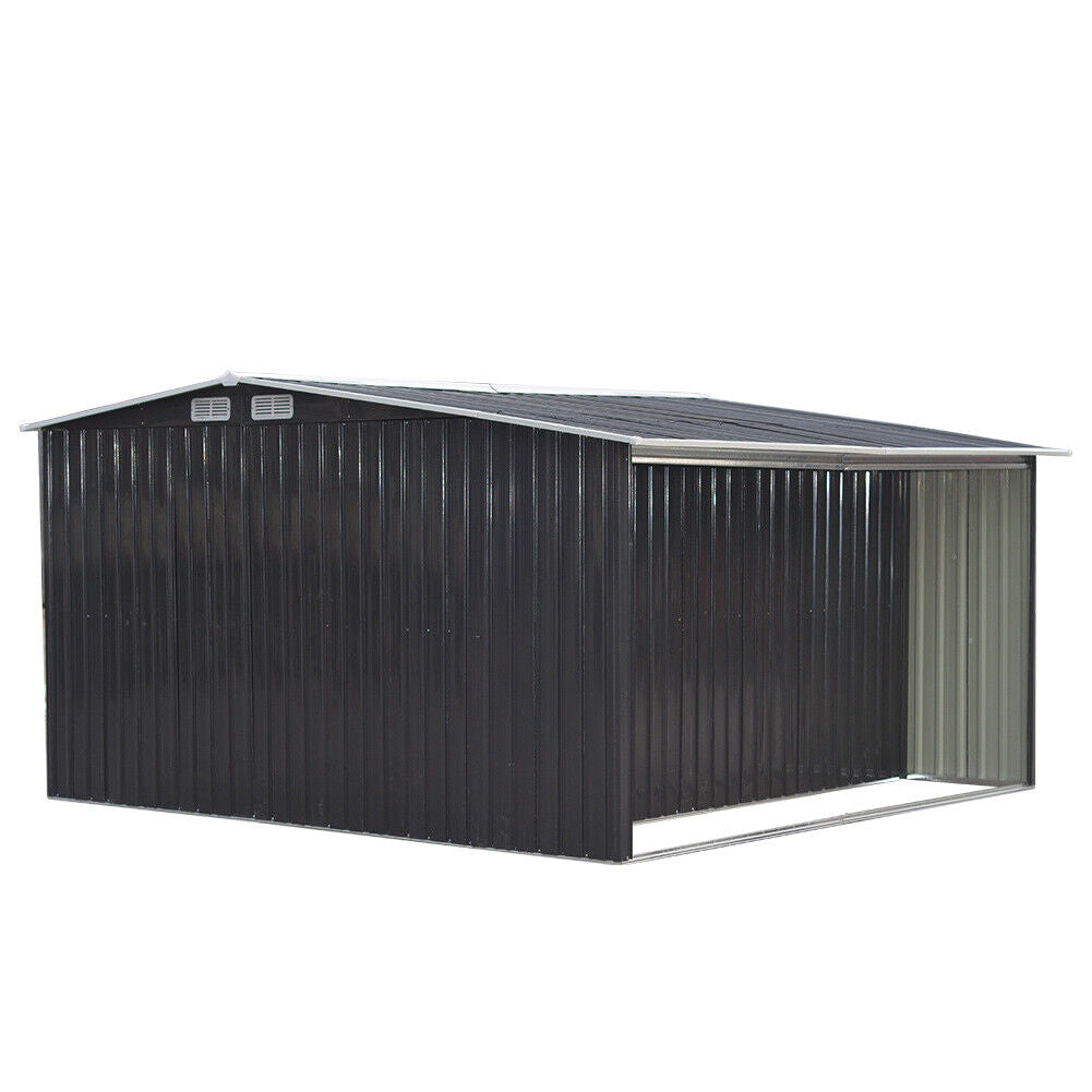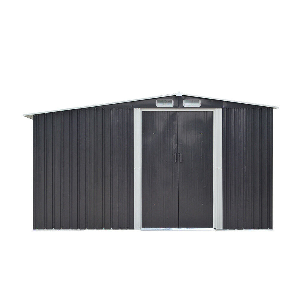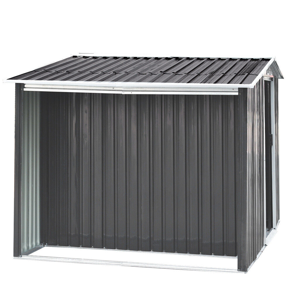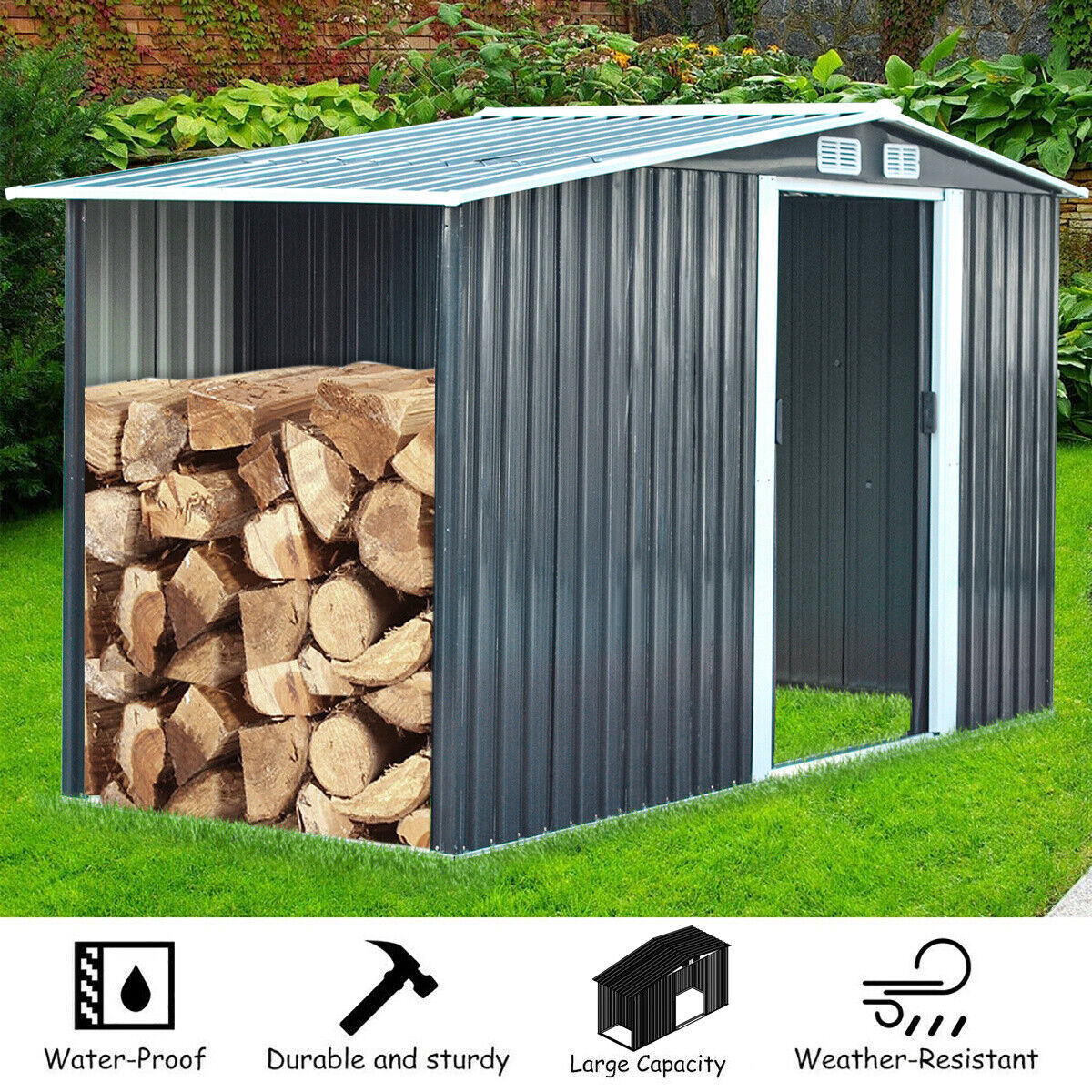 4*8/6*8/8*8/10*8ft Metal Garden Storage Shed Roof Tool Firewood w/Sliding Door