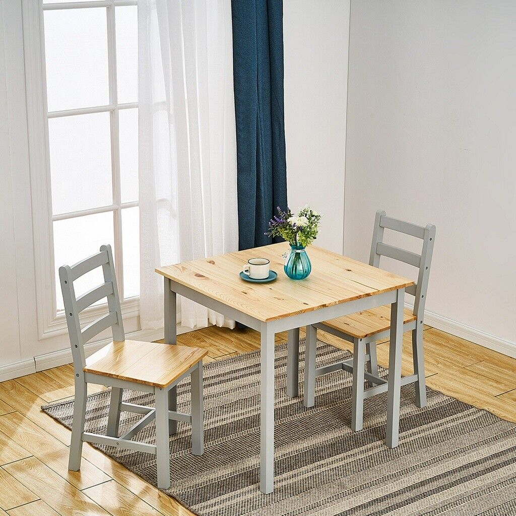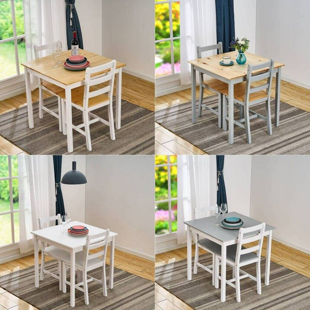 4 Colours Solid Wood Dining Table and 2 Chairs Set Kitchen Room Home Furniture