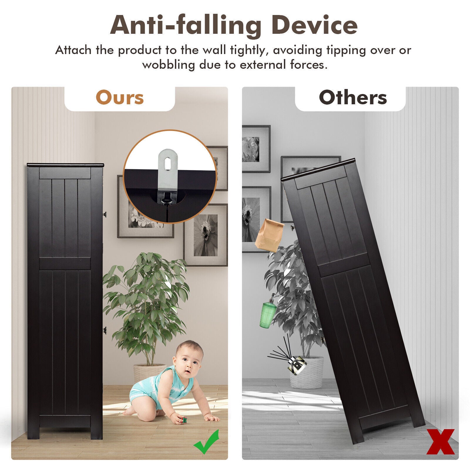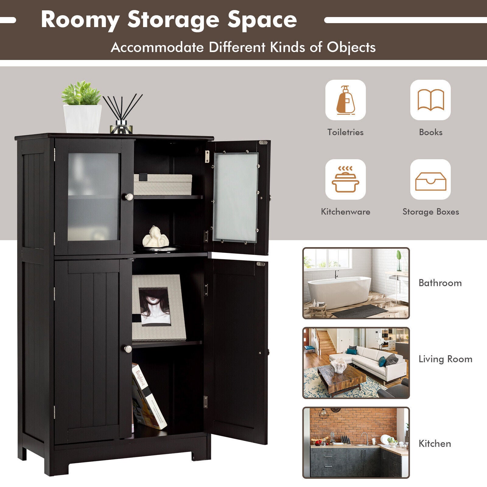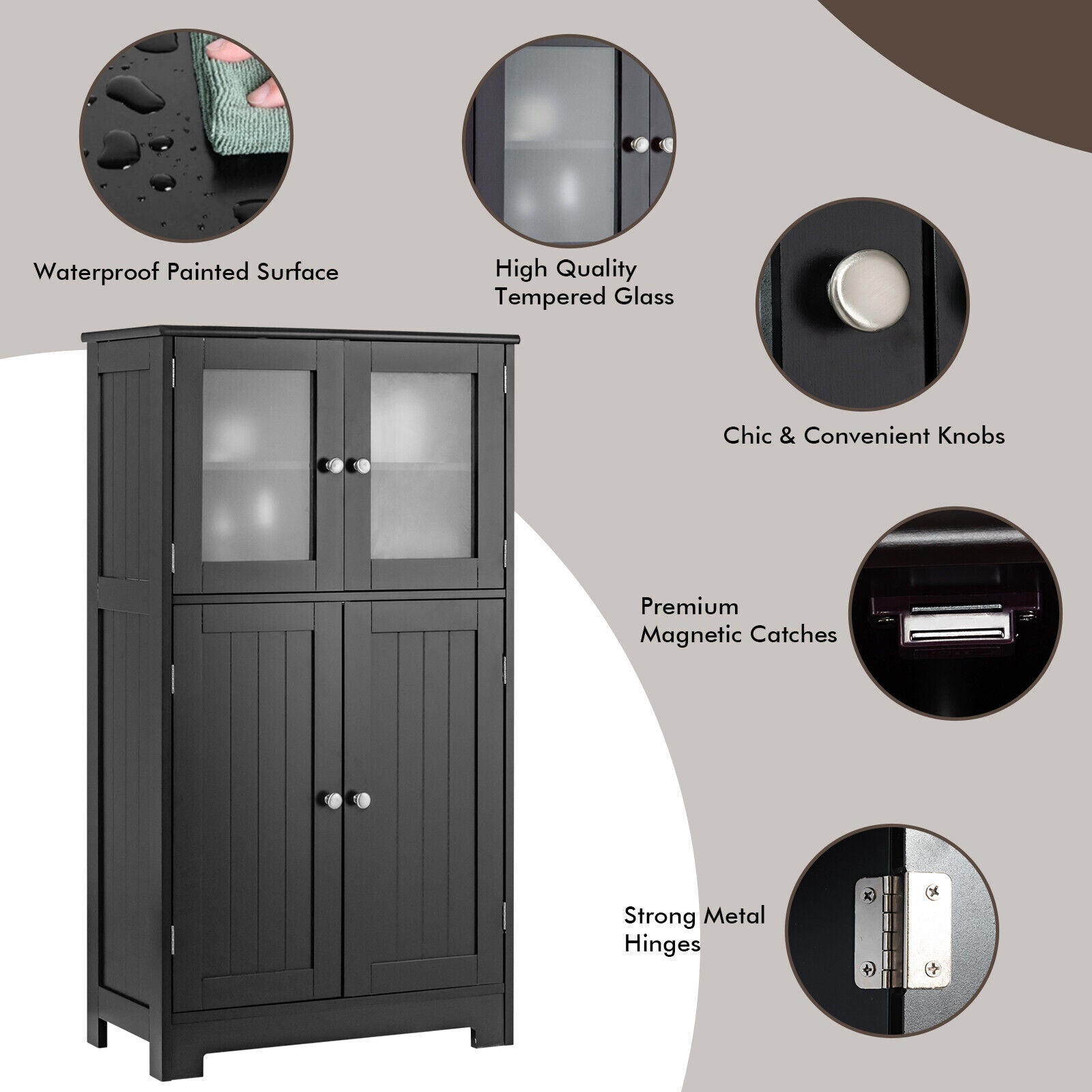4-Door Bathroom Cabinet Freestanding Floor Storage Cabinet Home Organizer Black