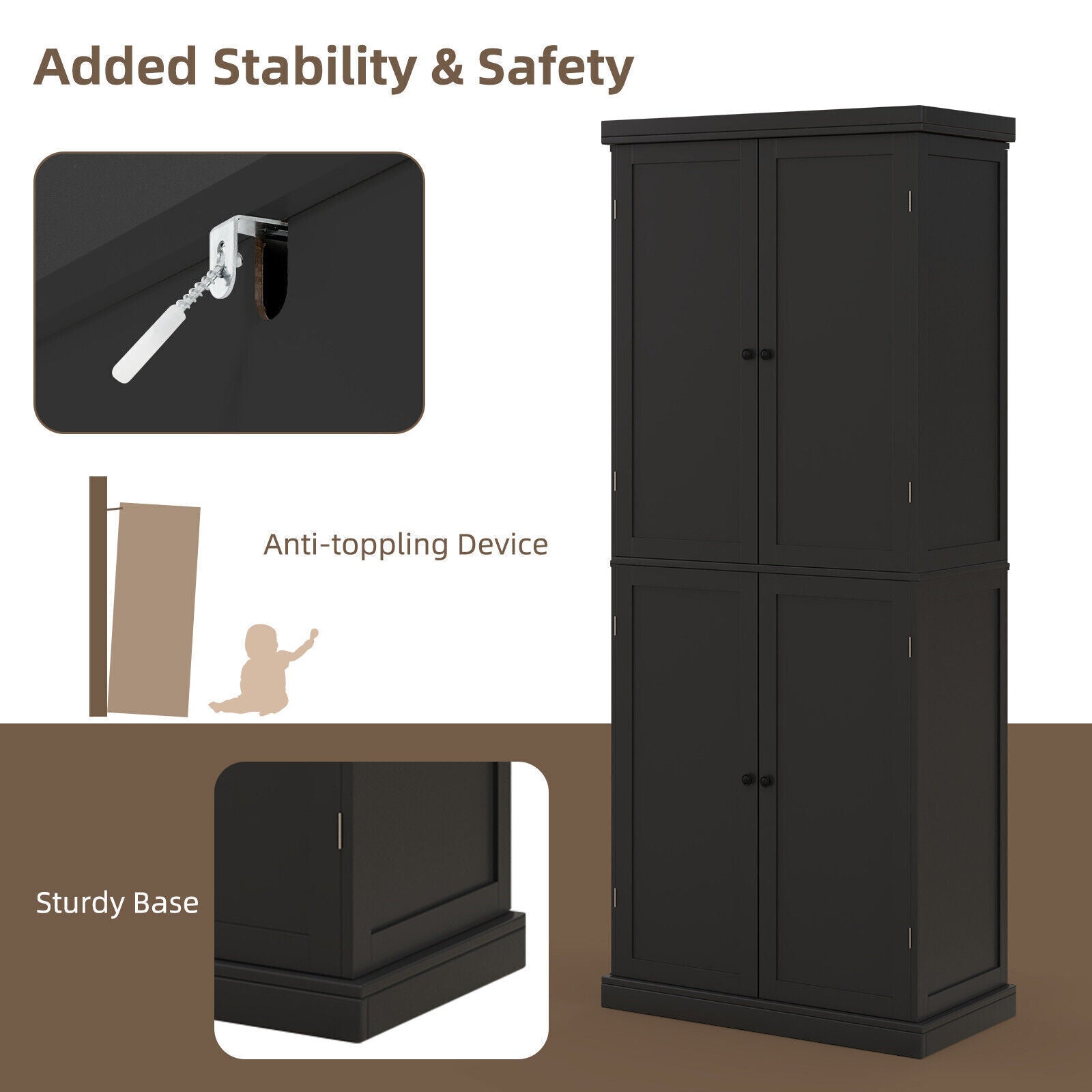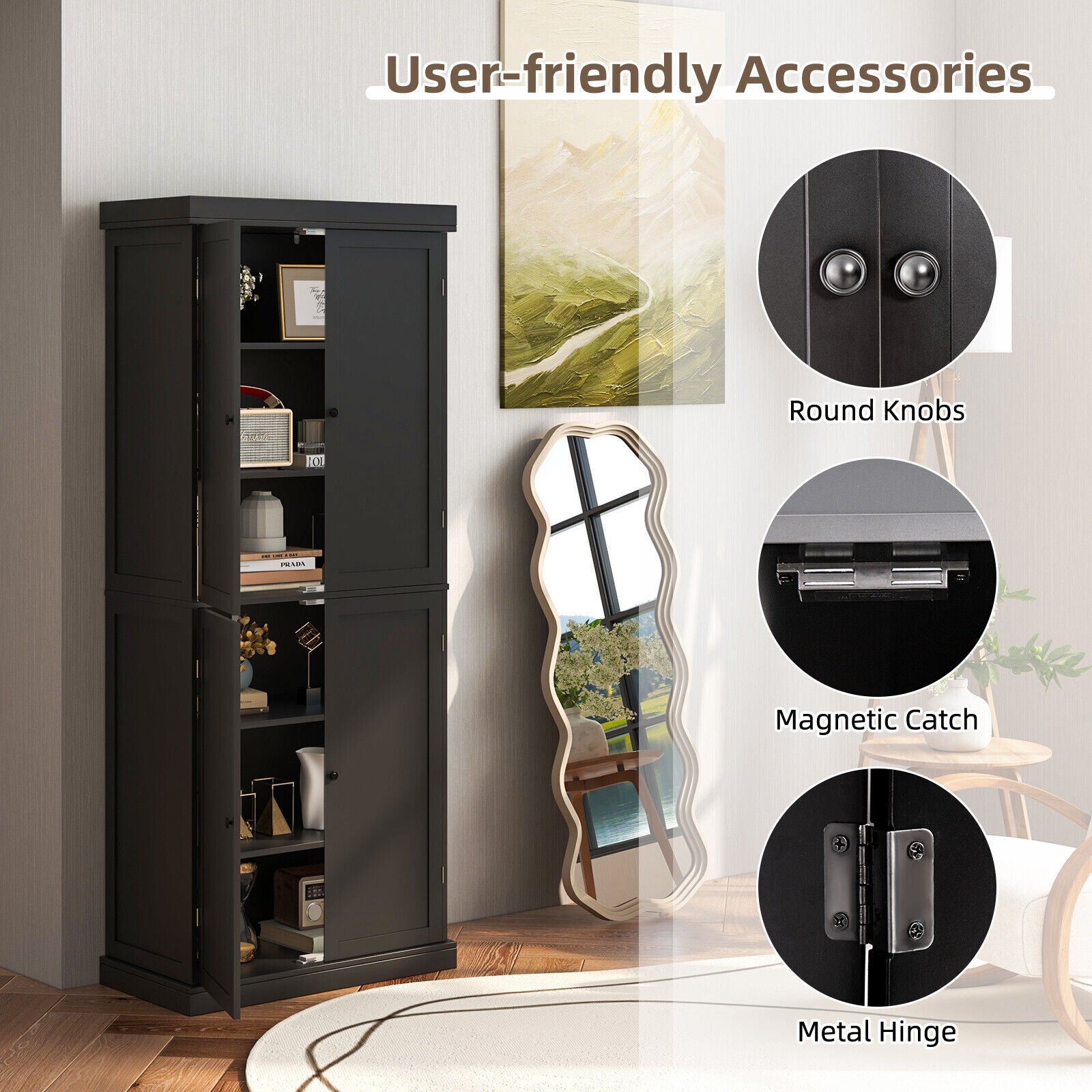 4 Door Kitchen Pantry 184cm Tall Buffet Cabinet Modern Storage Cabinet Organizer