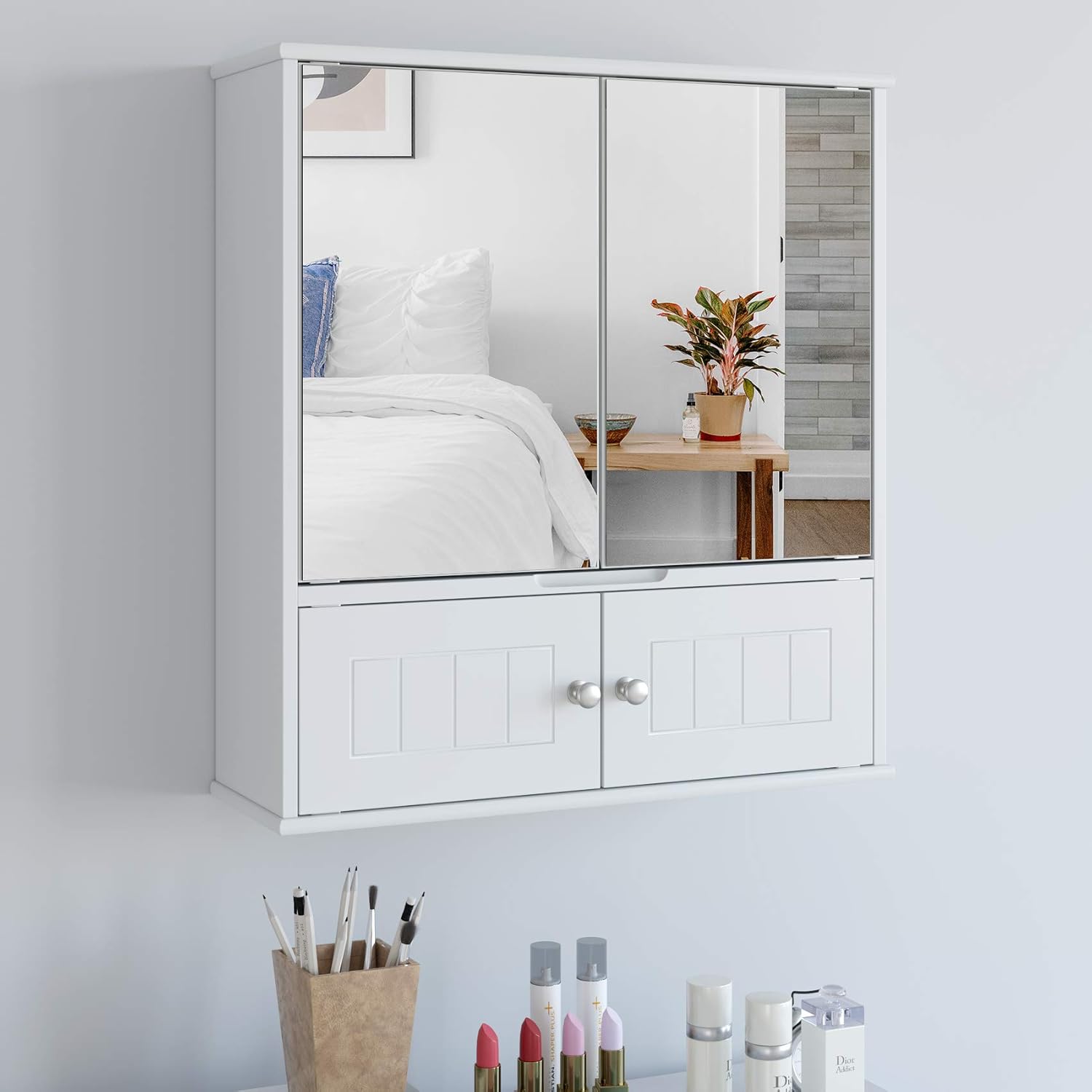 GOOD BYE FROM THE BATHROOM KLUTTER! - Whether you need a place for soaps, shaving creams, skin care products or medication, or you want to store the towels and toiletries in travel size, the closet is the perfect choice. It has three closed storage compartments with doors and the internal shelf behind mirrors can be adjusted for different sizes.