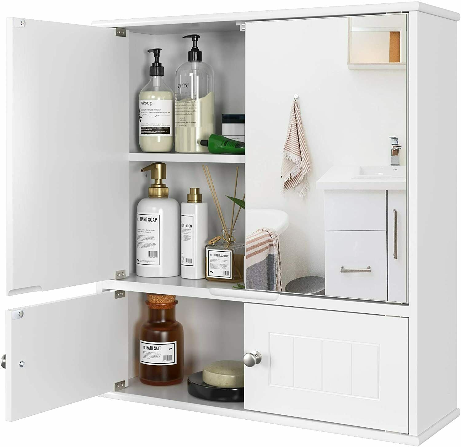 4 Door Wall Mounted Mirror Cabinet Storage Shelf Bathroom Cupboard Unit