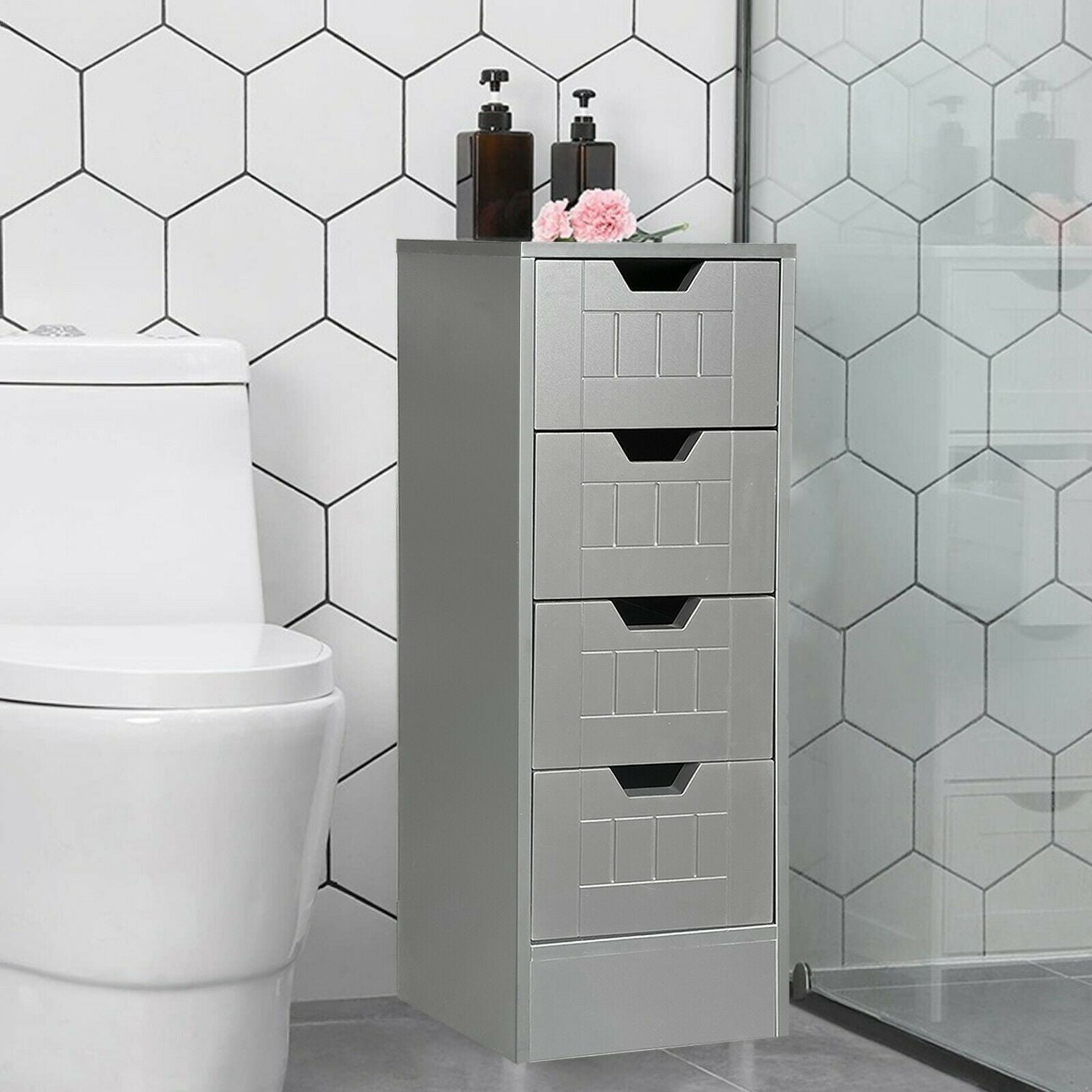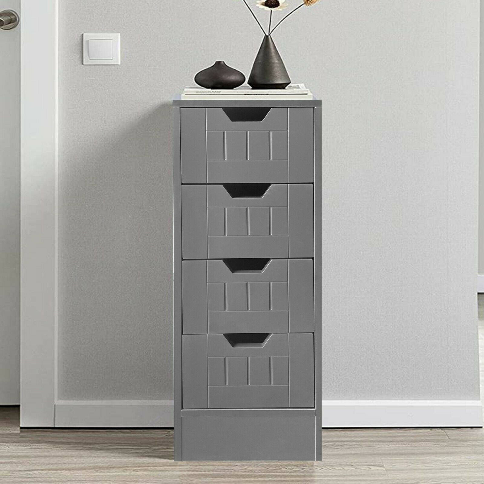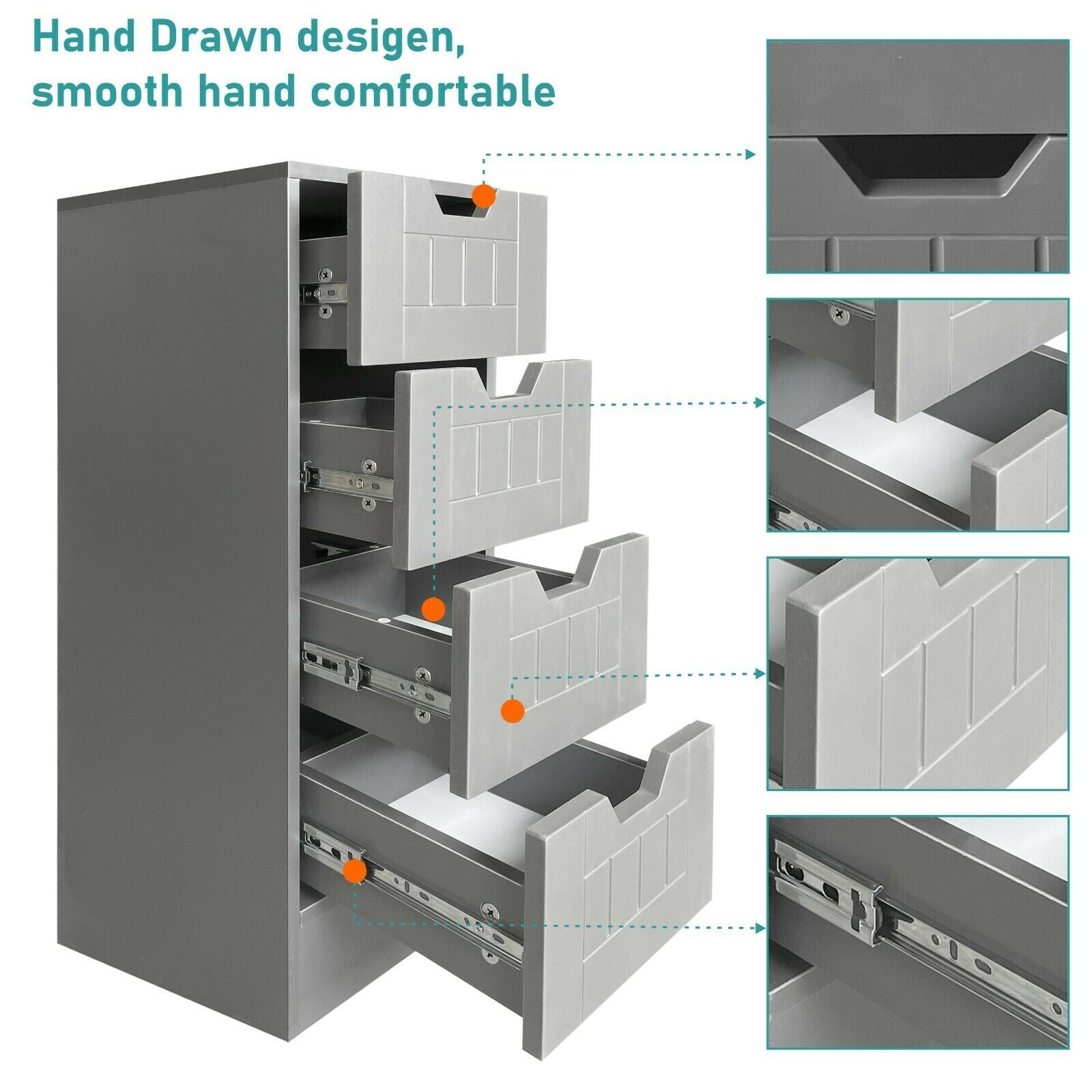 4 Drawer Bathroom Cabinet Chest Wooden Storage Cupboard Unit Grey Freestanding