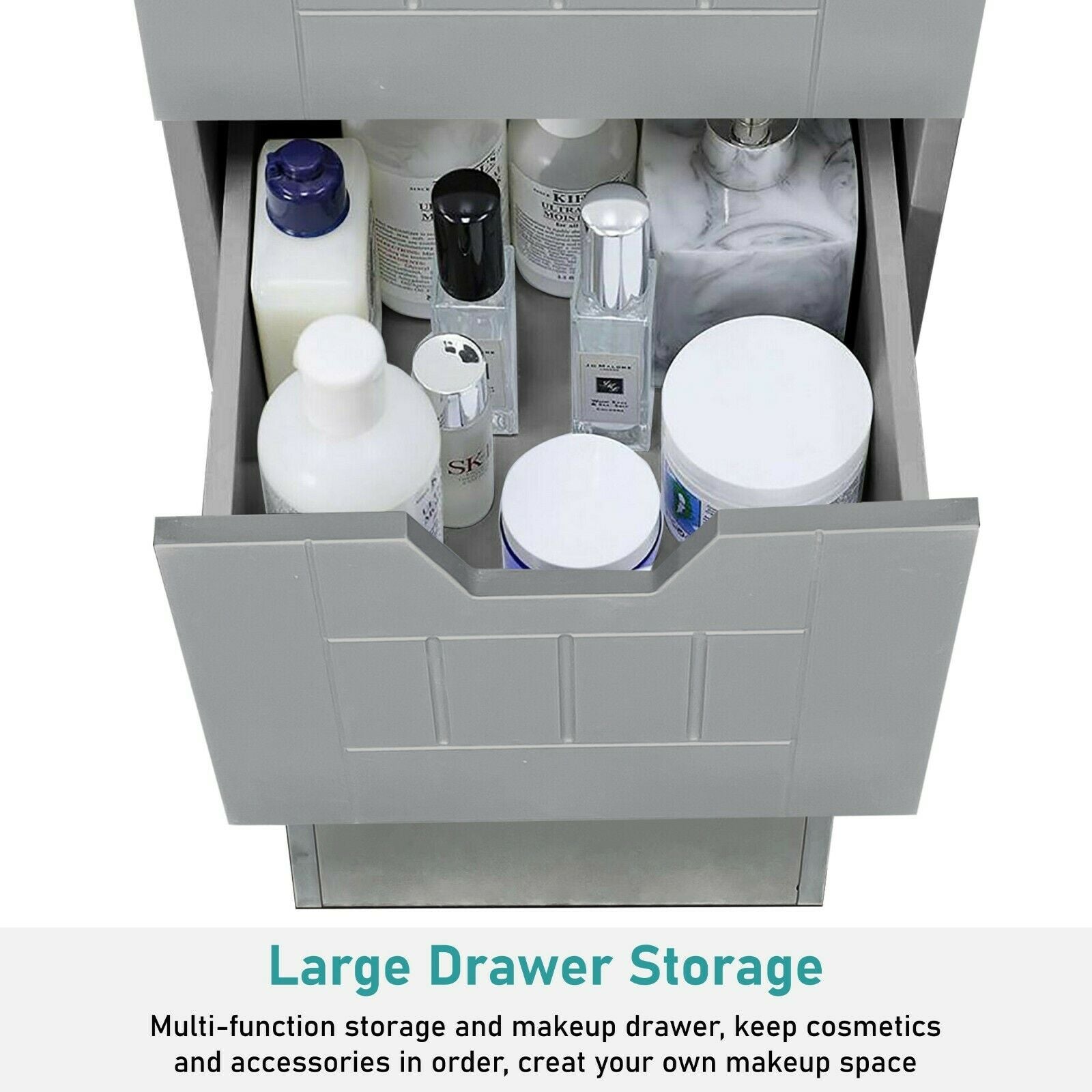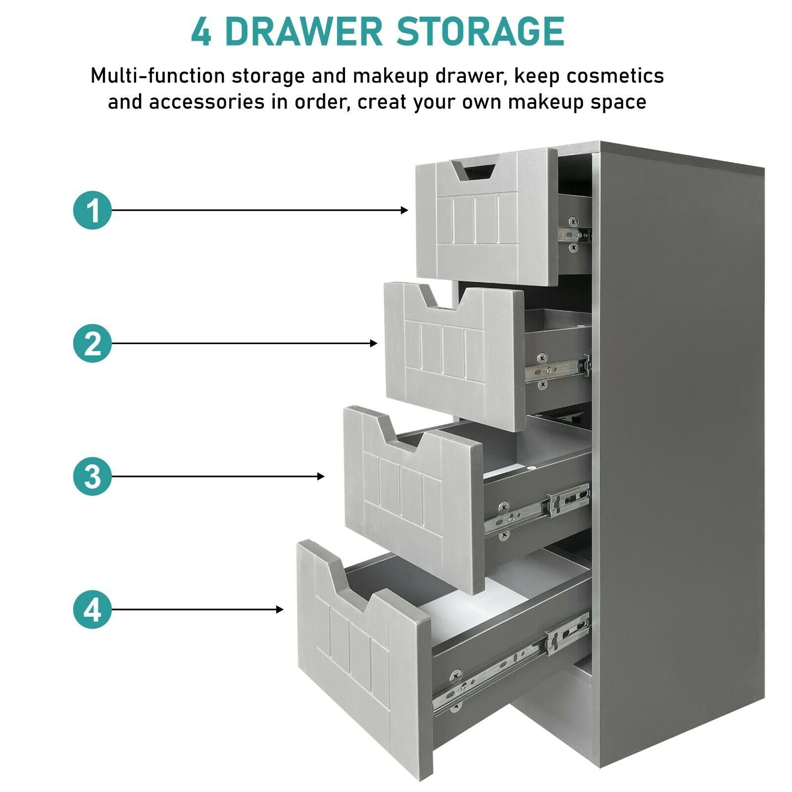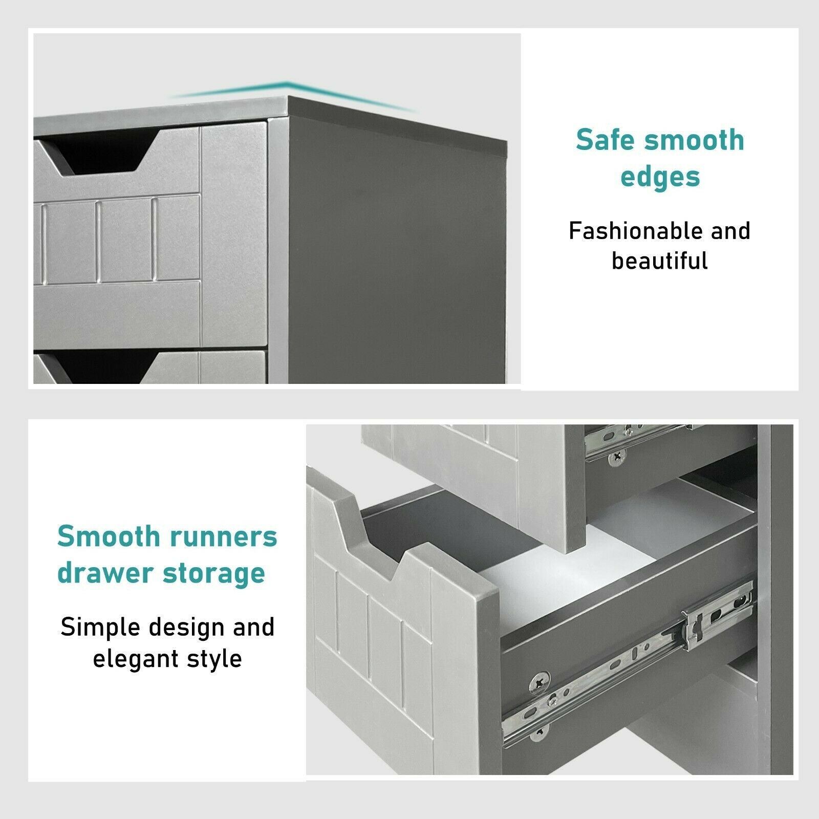 4 Drawer Bathroom Cabinet Chest Wooden Storage Cupboard Unit Grey Freestanding