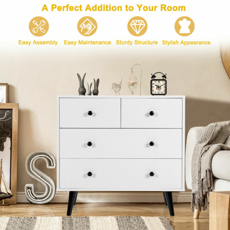 4 Drawer Chest Storage Dresser Freestanding Sideboard Cabinet Organizer Unit