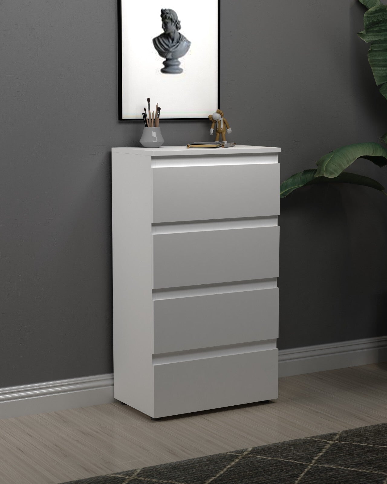 4 Drawer High Gloss Chest Cabinet Bedroom Furniture Unit Wall Mounted - White