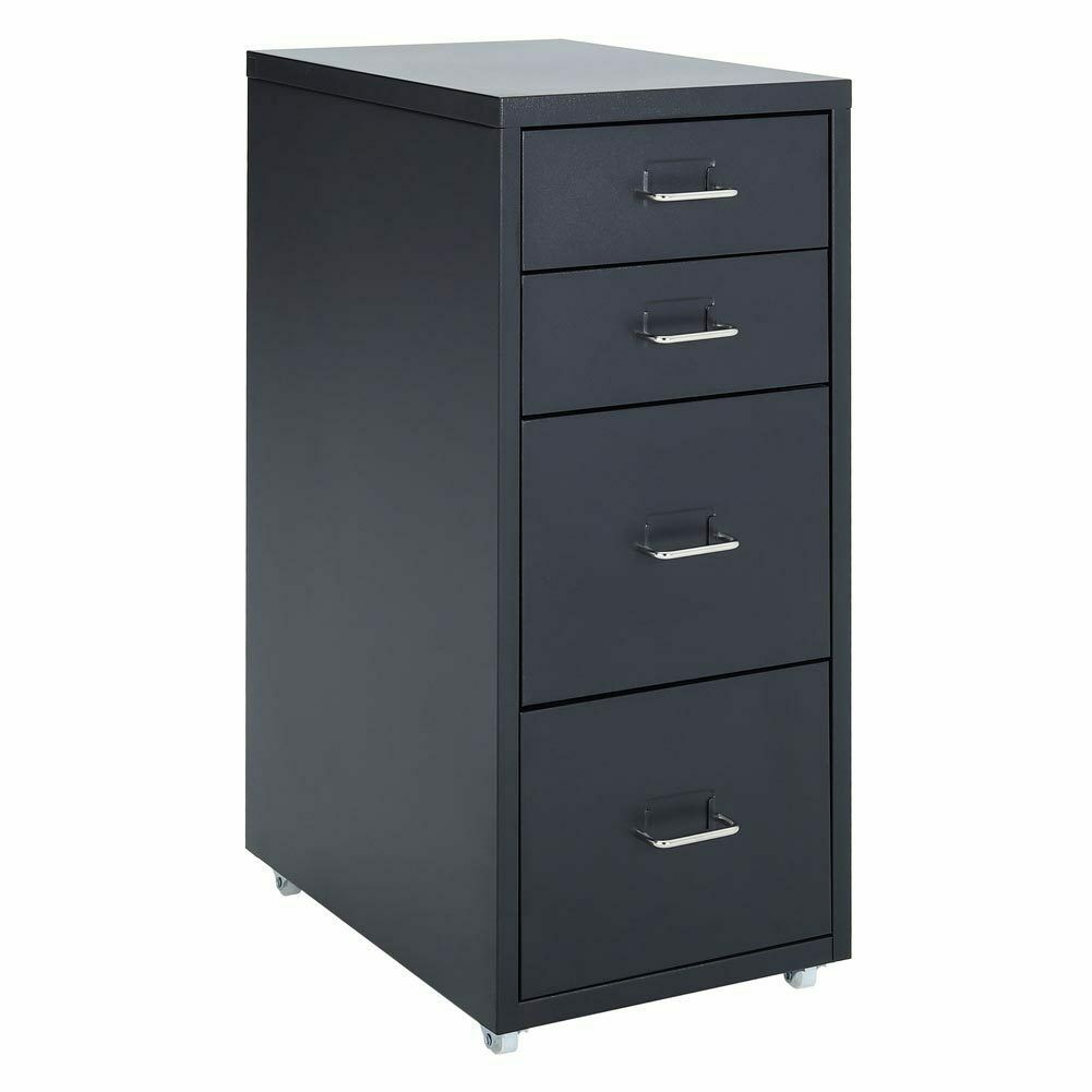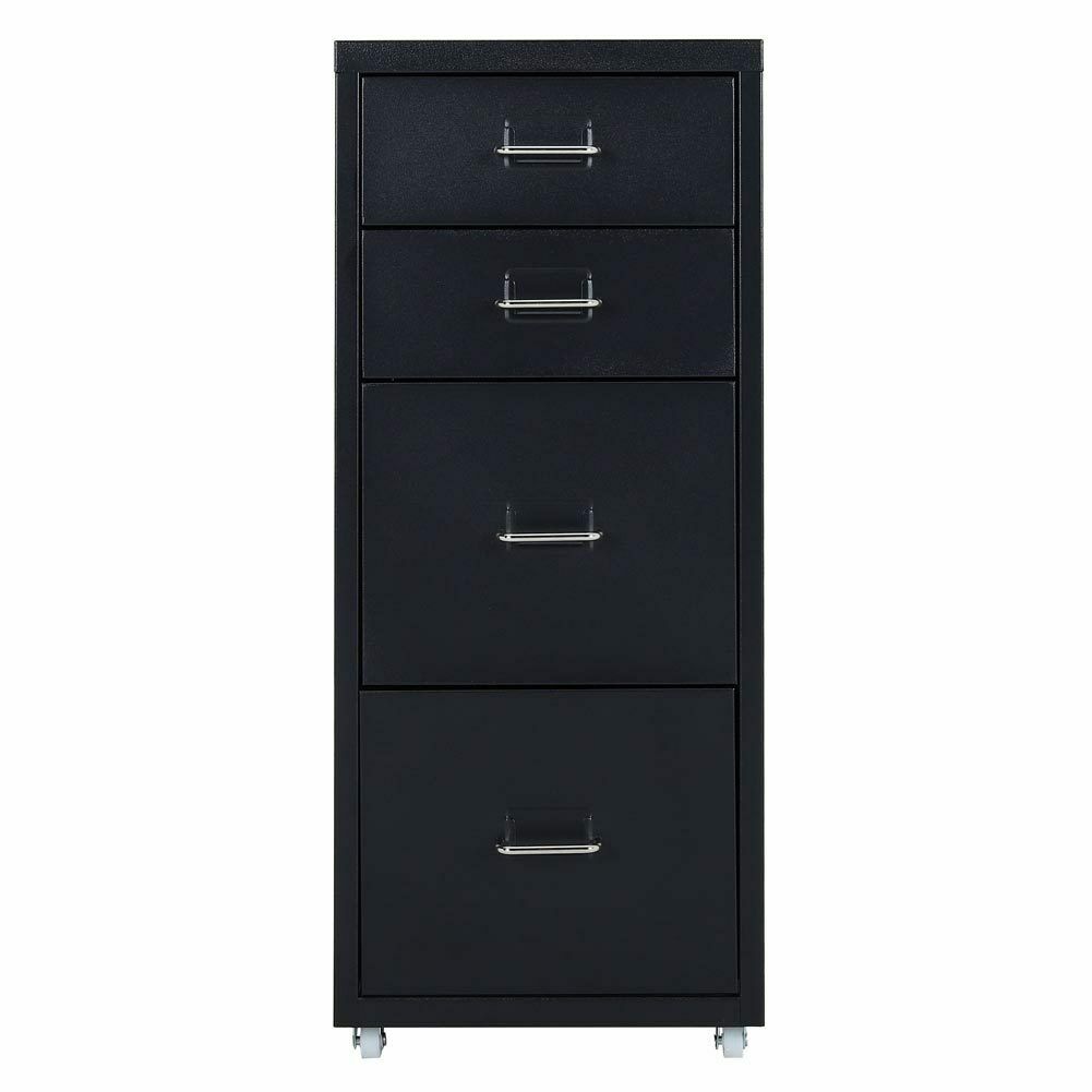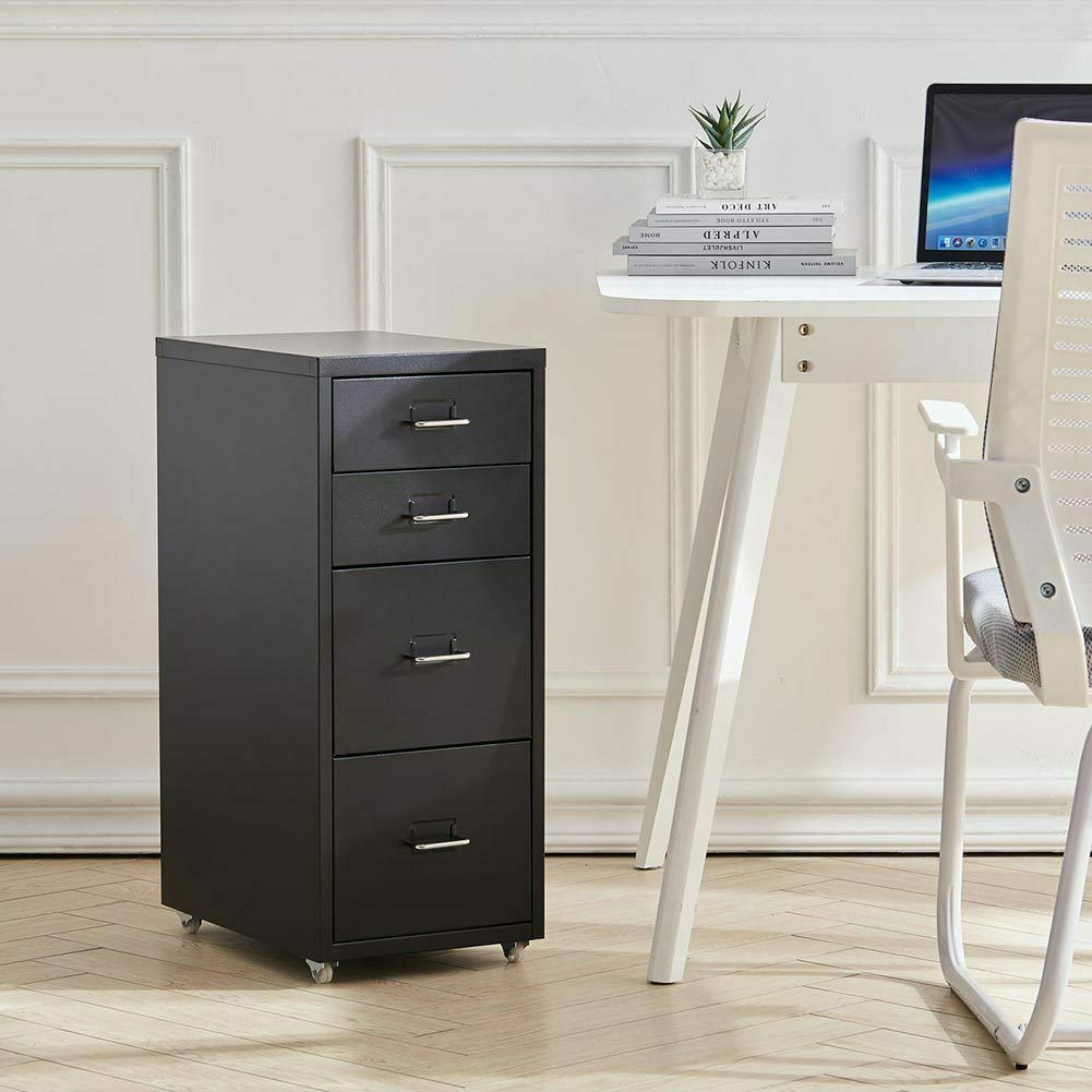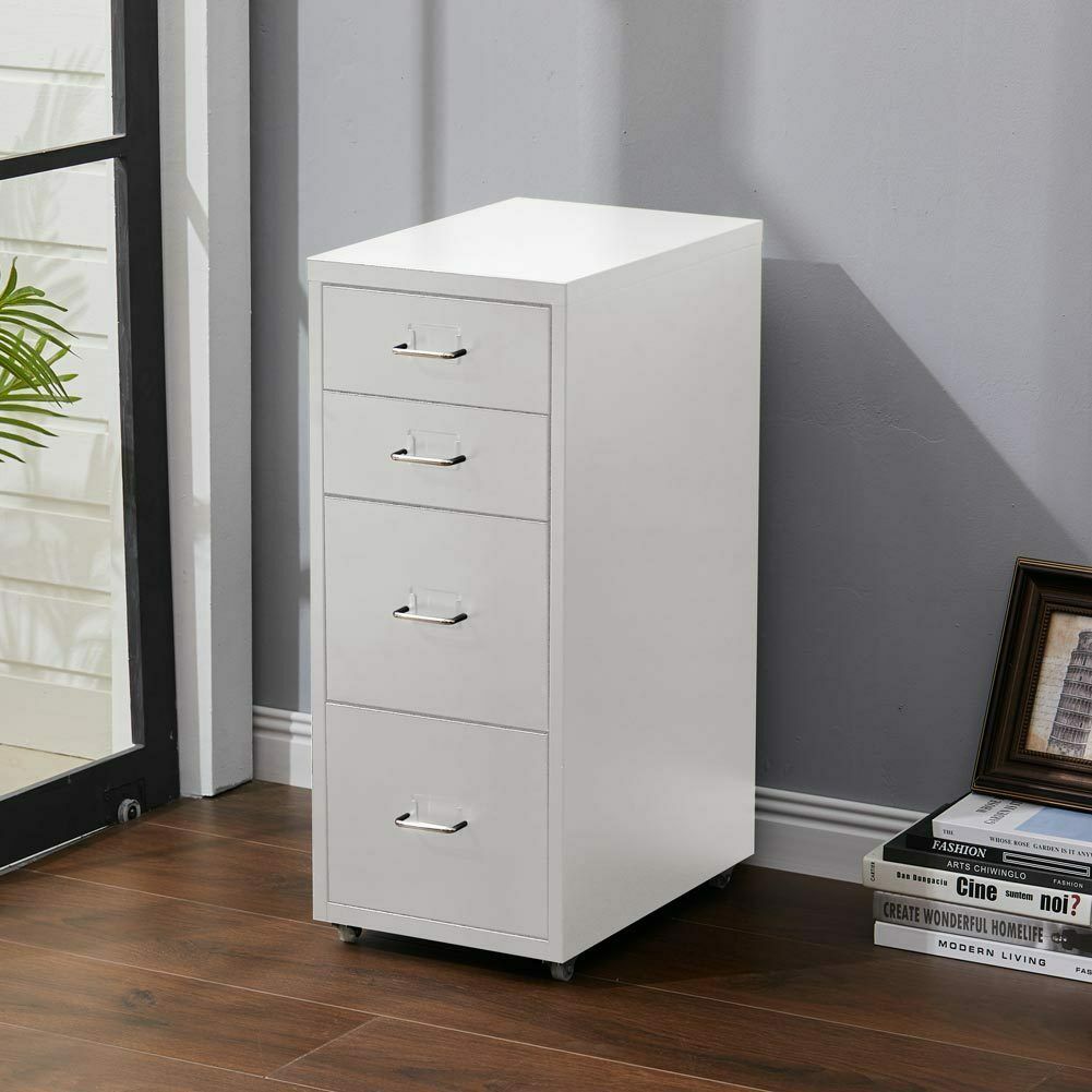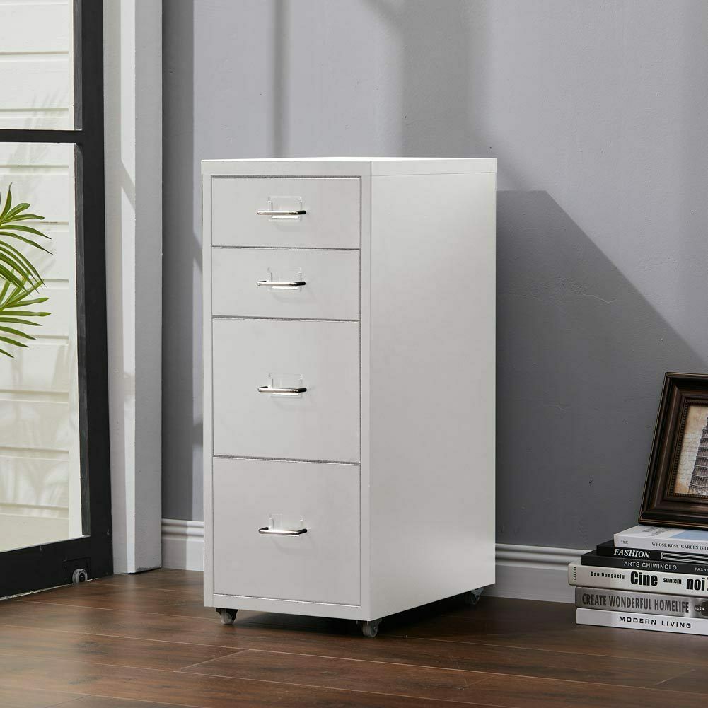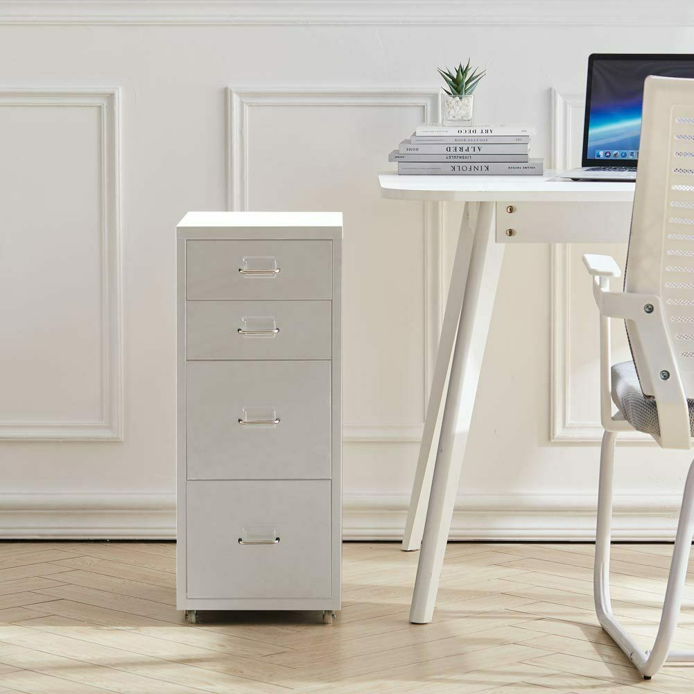 4 Drawer Metal Mobile Office Filing Pedestal Cabinet File Storage White/Black UK