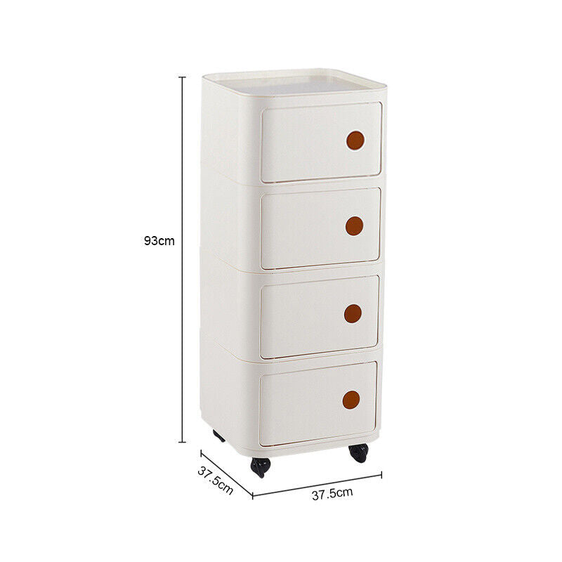 4 Drawer Side Table With Storage Bedside Nightstand Tea Sofa End Table W/ Wheels