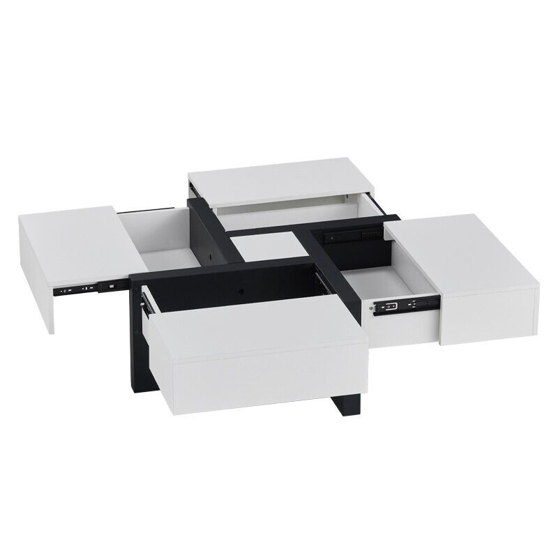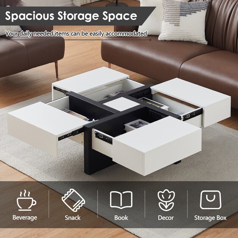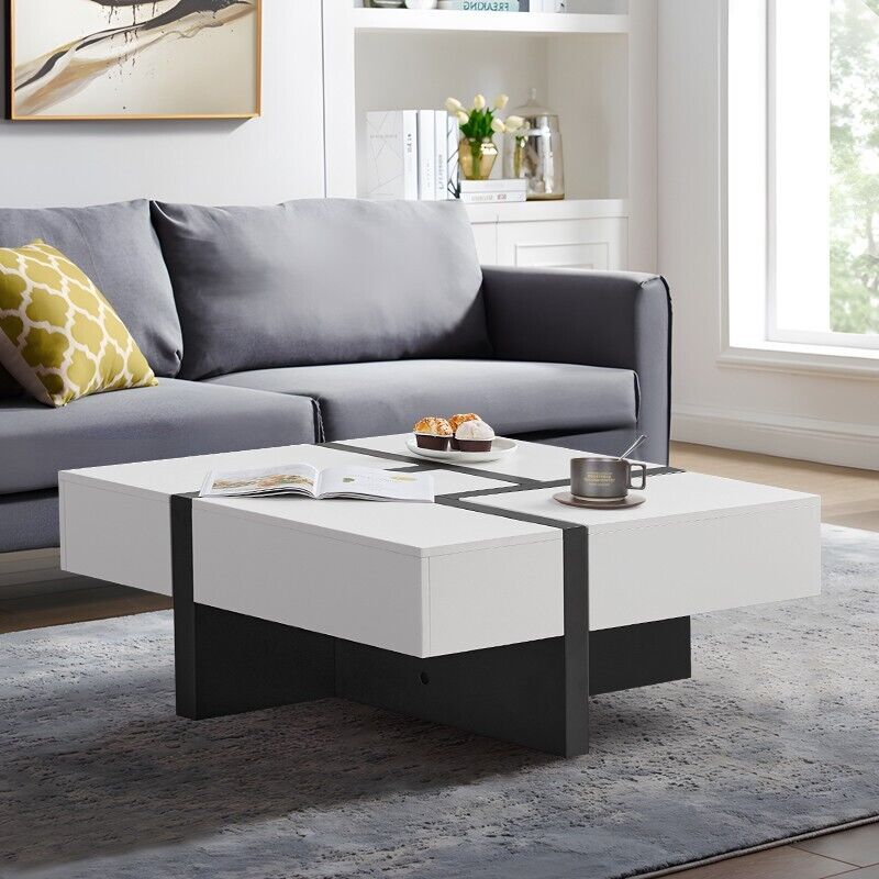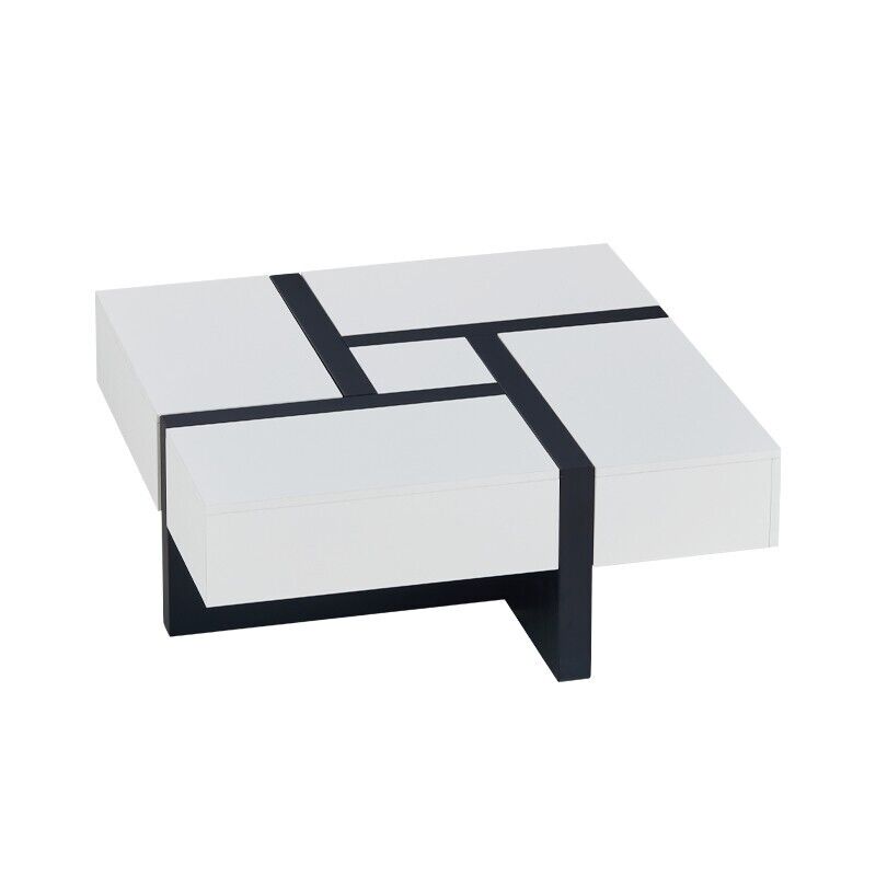 4 Drawers Coffee Table Storage Square Living Room Lounge MDF 90*90CM Black+White