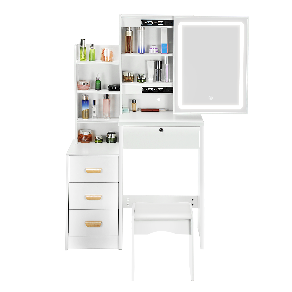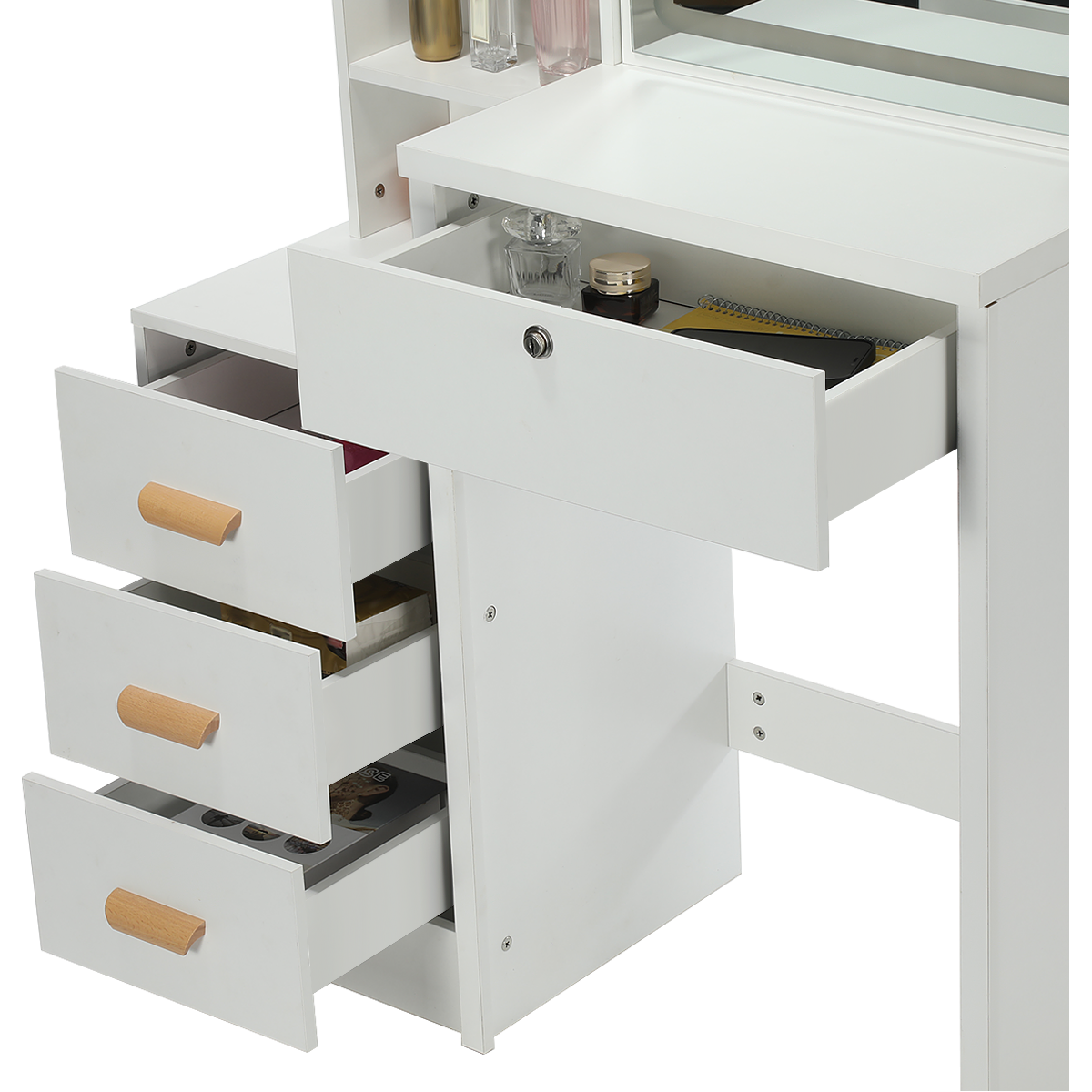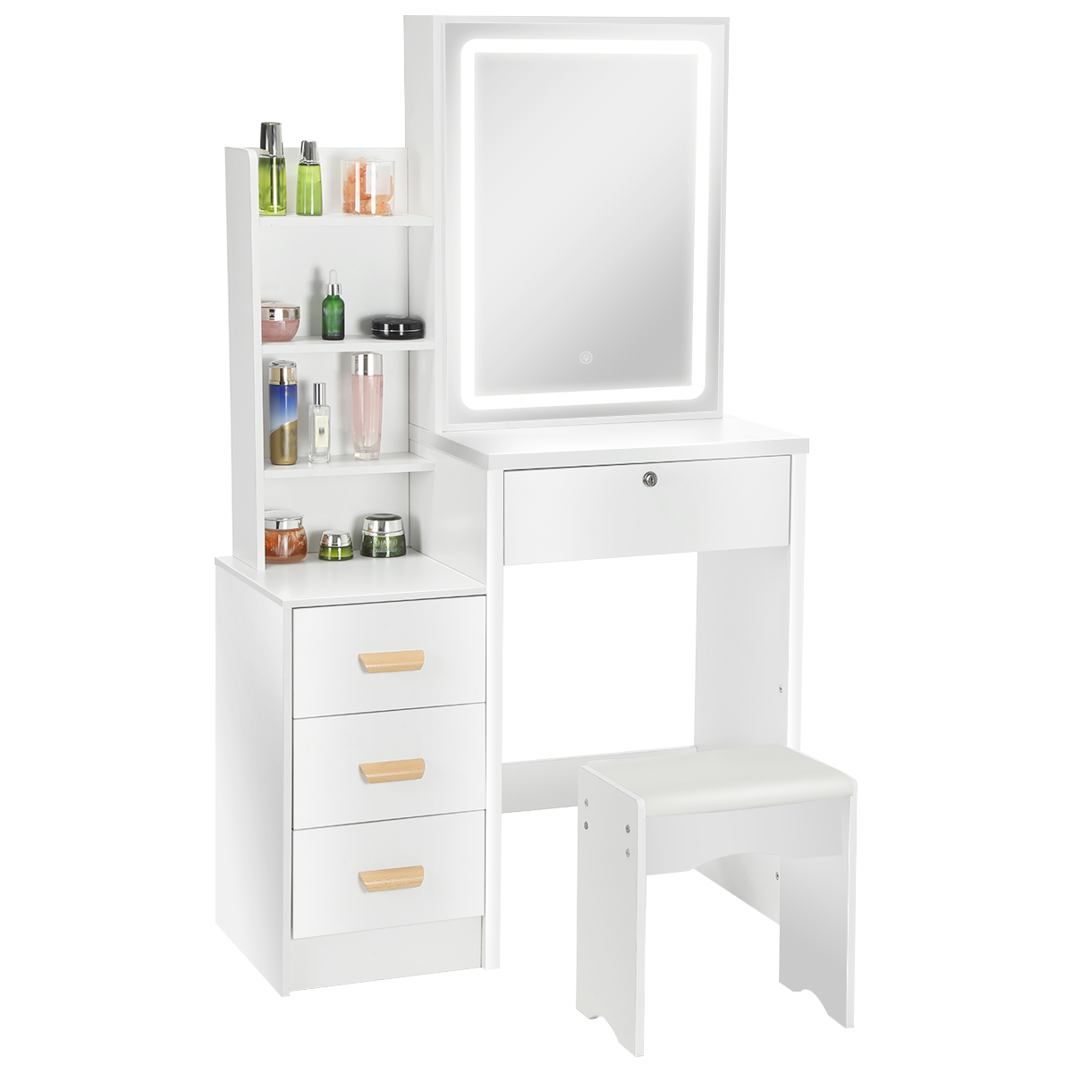 4 Drawers Dressing Table Set Makeup Desk with LED Mirror Stool Shelf Scxassgfypk