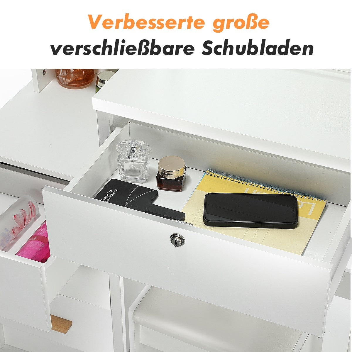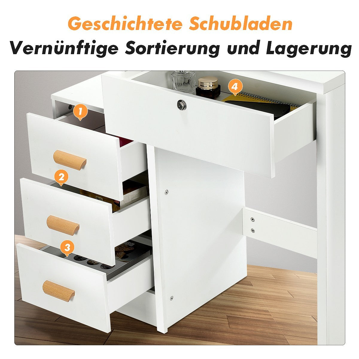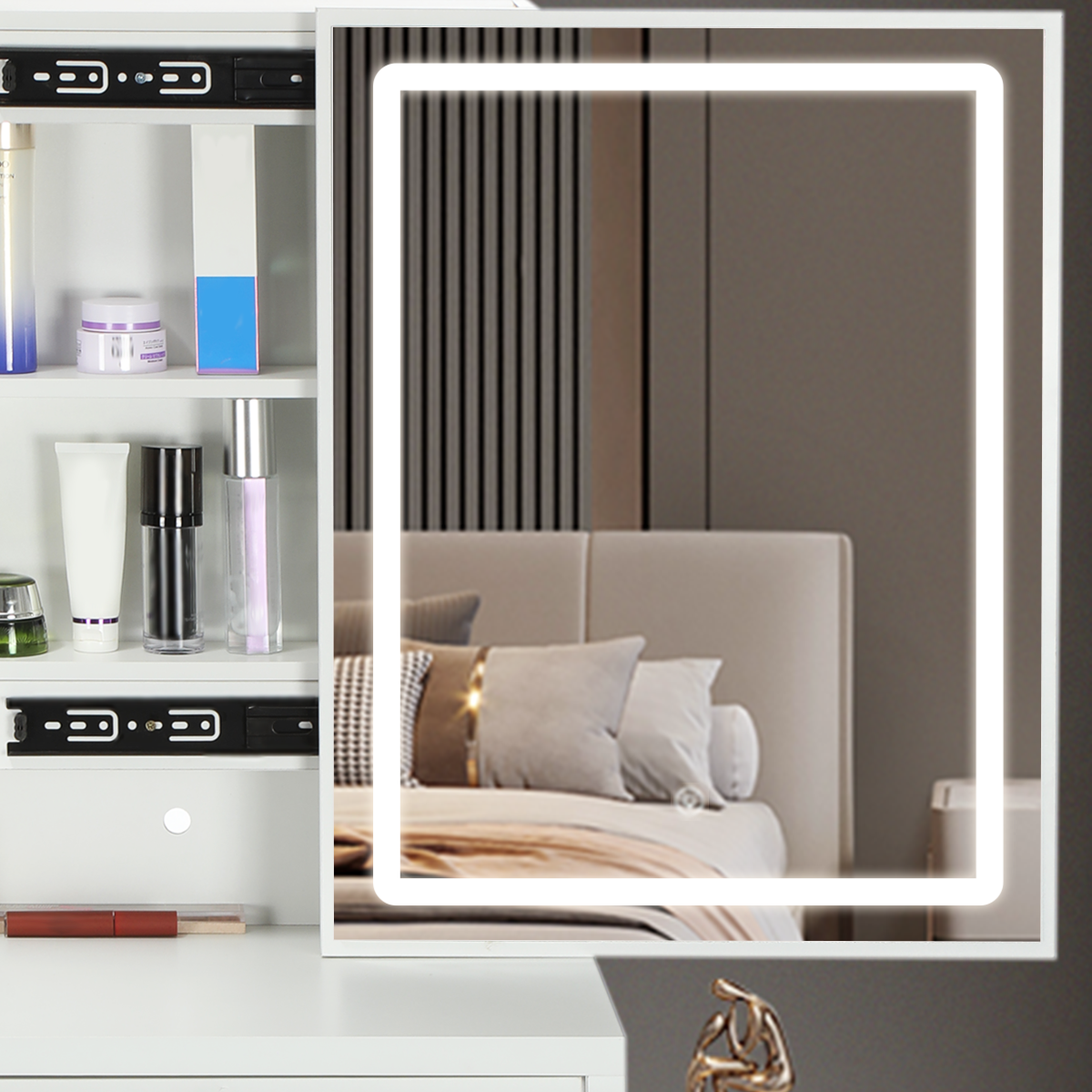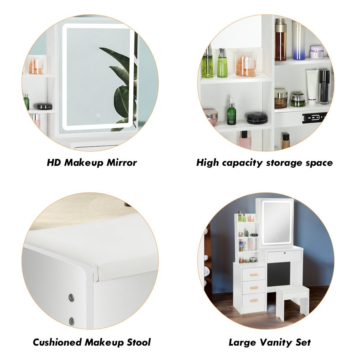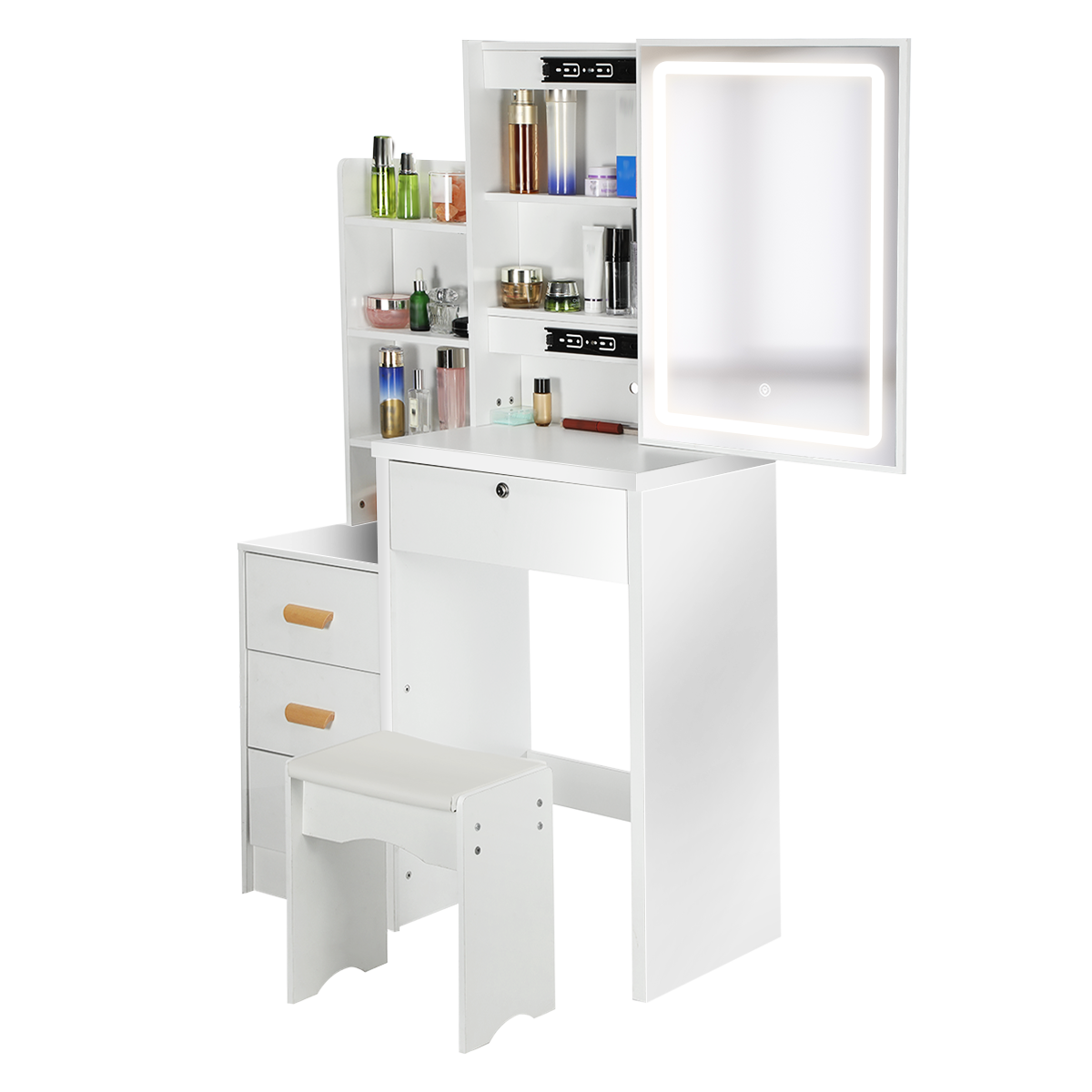4 Drawers Dressing Table Set Makeup Desk with LED Mirror Stool Shelf Zieoozlzfmn