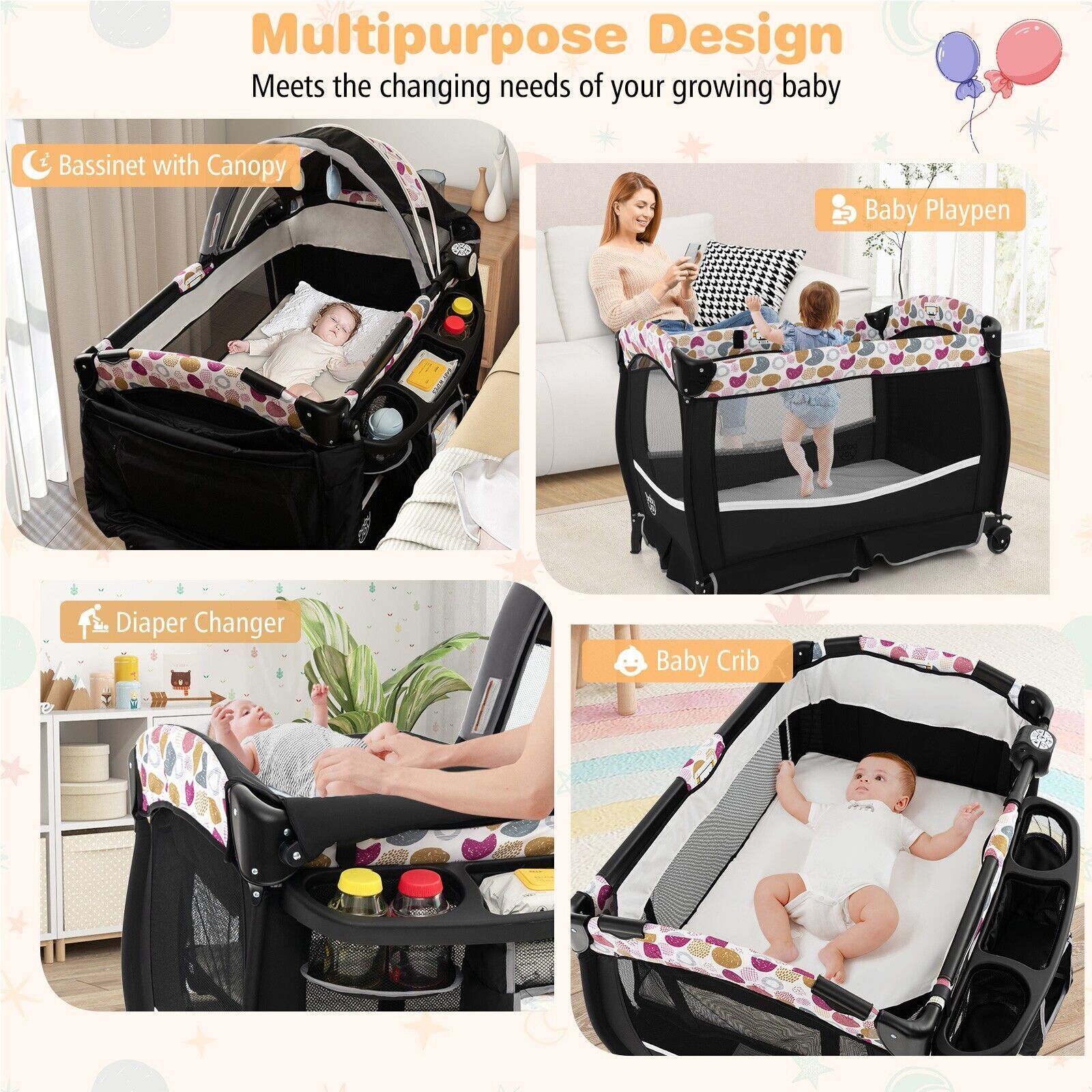 4 in 1 Baby Crib Bassinet Bed Infant Changing Table Portable Nursery Play Center