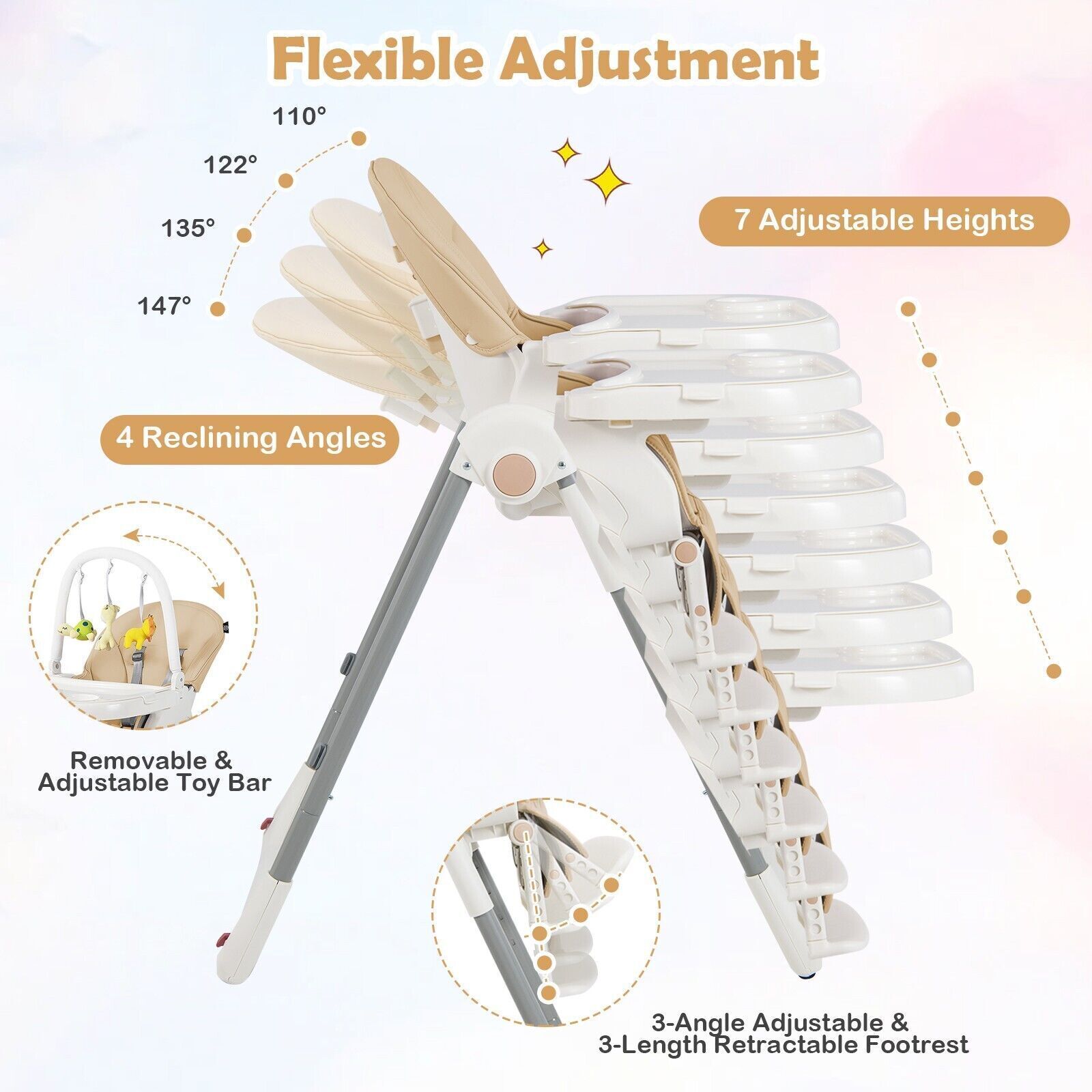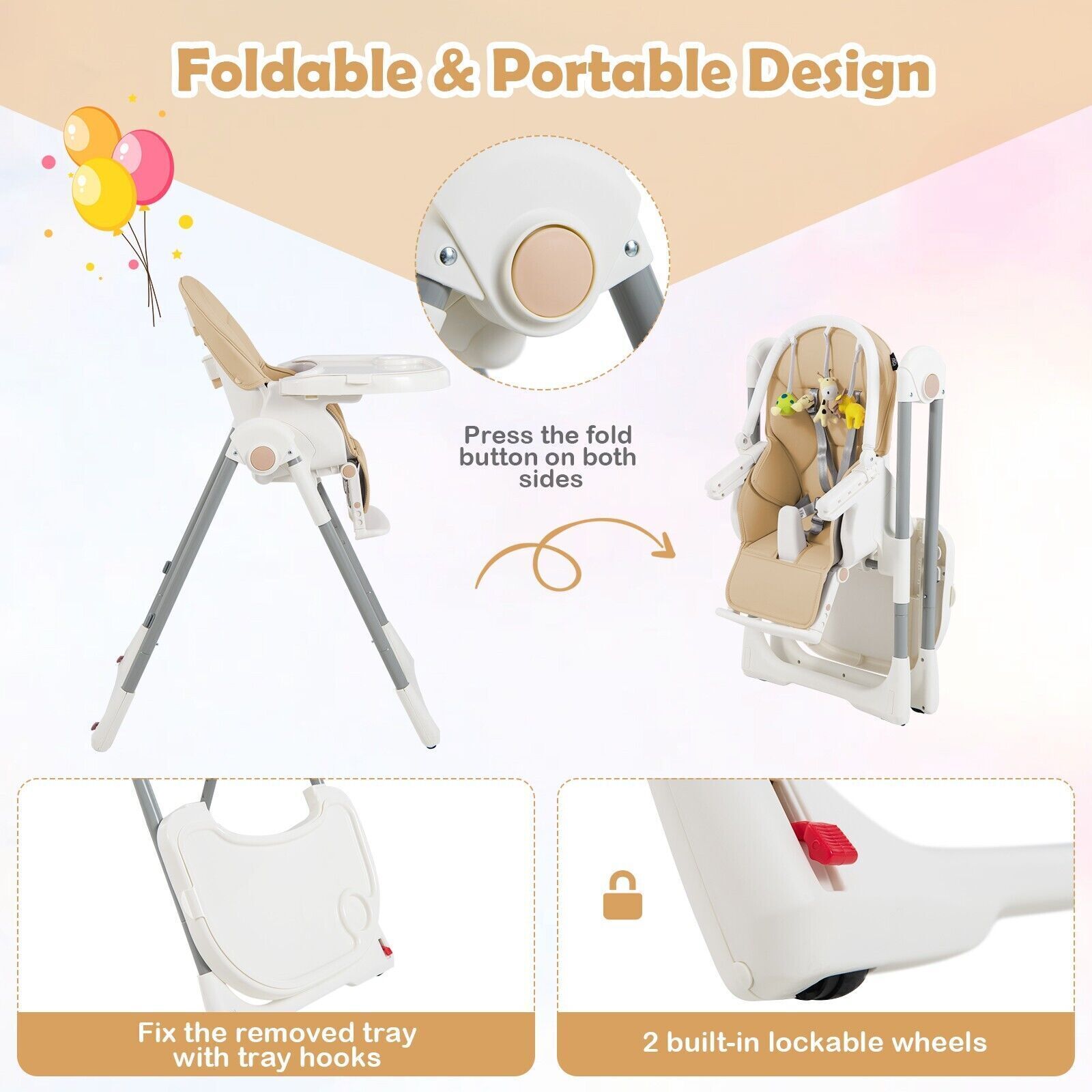 4-in-1 Baby High Chair toddler Foldable Feeding Chair w/ Removable Cushion