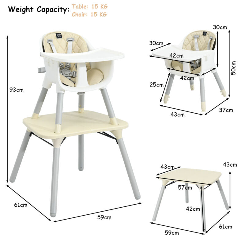 4 in 1 Baby Highchair Infant Feeding Seat Kids Table&Chair Set W/Adjustable Tray