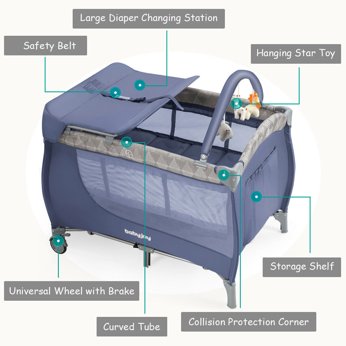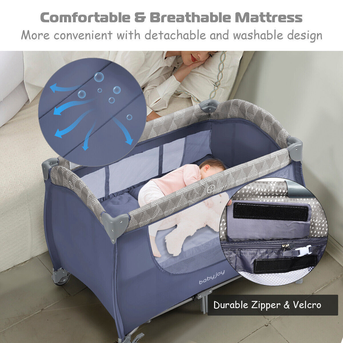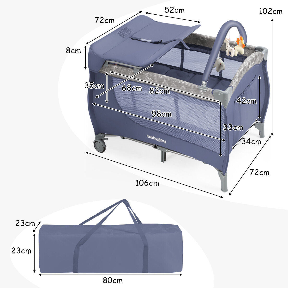 4-in-1 Baby Travel Cot Foldable Infant Crib Changing Table Children Playpen